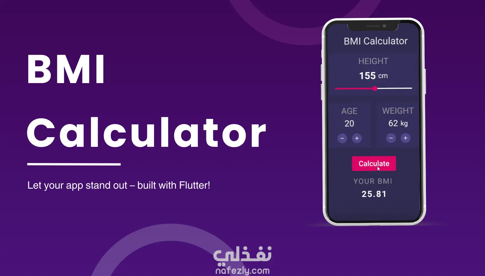 مشروع BMI Calculator هو تطبيق بسيط صممته باستخدام Flutter لحساب مؤشر كتلة الجسم (Body Mass Index). المستخدم بيدخل الطول والوزن، والتطبيق بيحسب تلقائيًا الـ BMI وبيظهر له حالته الصحية سواء كانت مثالية أو أقل/أعلى من المعدل الطبيعي. ركزت في المشروع على تصميم واجهة جذابة وسهلة الاستخدام، مع ألوان مريحة وتفاعل سريع مع المستخدم.
