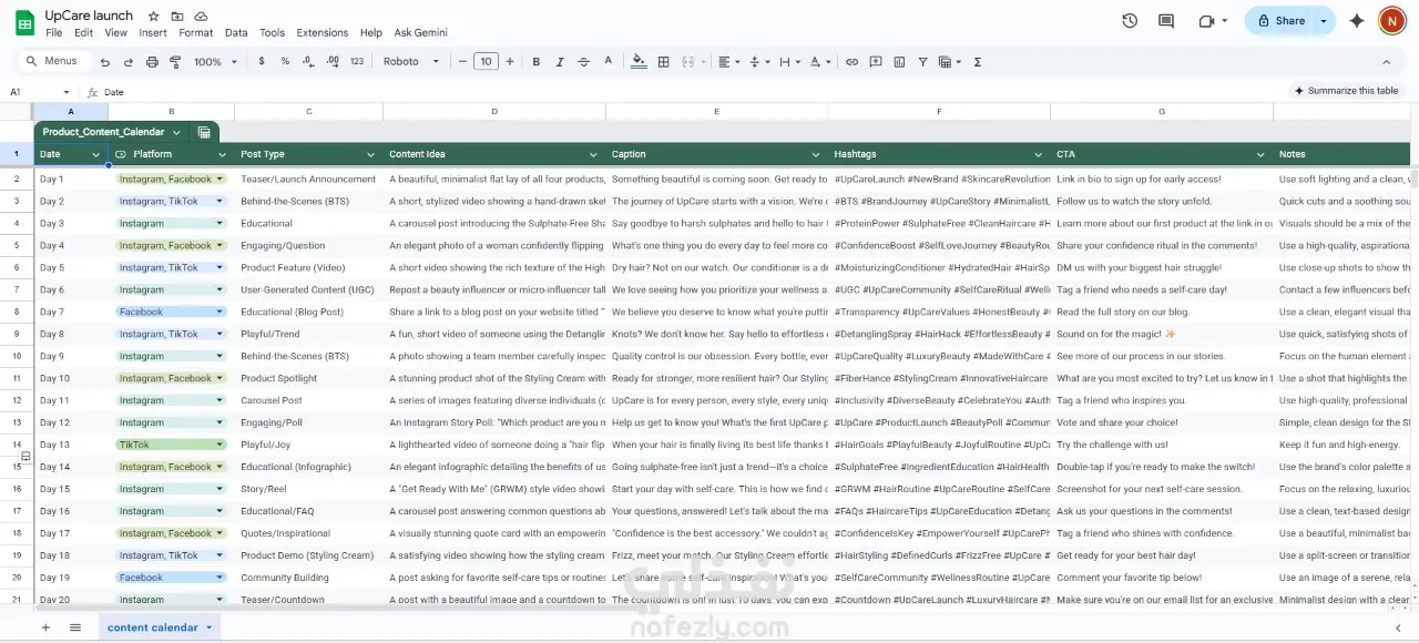 ملف Excel منظم بالخطة الكاملة