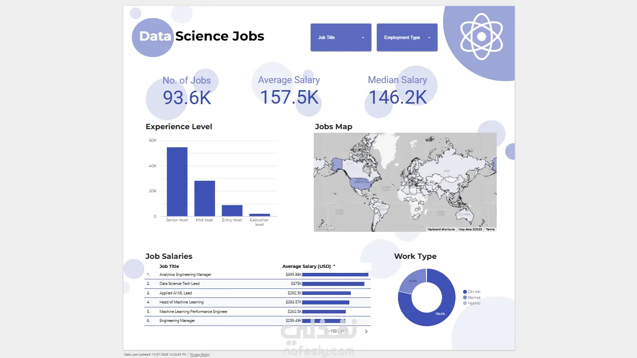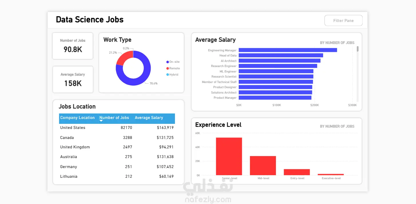 لوحة معلومات تفاعلية من Power BI / Looker Studio تحلل اتجاهات سوق العمل والرواتب وأنماط التوظيف في مجال علم البيانات.