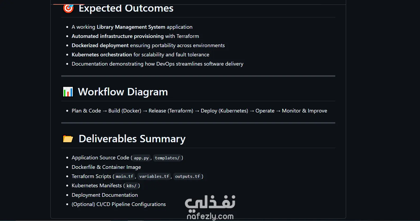 This project is a Library Management System designed not only to implement basic library operations but also to showcase DevOps practices for modern application delivery. The system integrates Infrastructure as Code (Terraform), containerization (Docker), and orchestration (Kubernetes) to ensure scalability, automation, and consistency across environments.