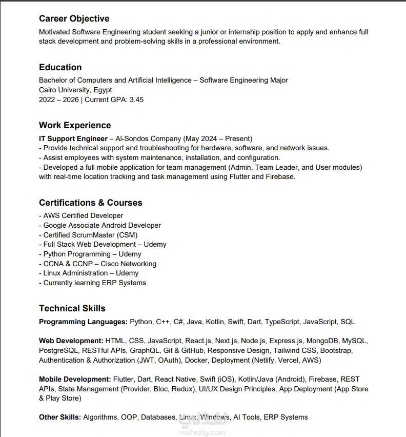 سيره ذاتيه تضم كل مواهب و خبرات العميل