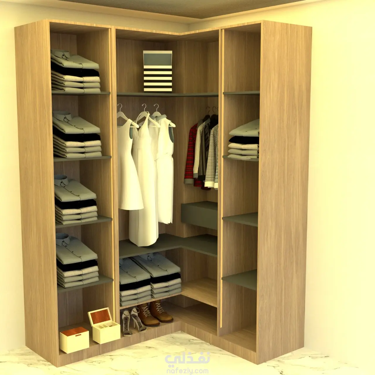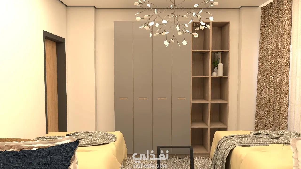 تصميم أنيق لغرف النوم مع منطقة دريسنج مميزة، يجمع بين الوظيفة والجمال.