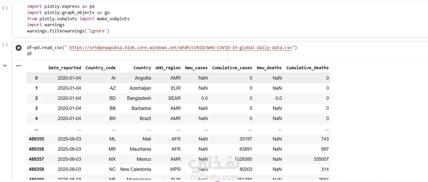 مشروع متكامل لتحليل بيانات كوفيد-19 بشكل احترافي يساعد في فهم تطور الجائحة من خلال الرسوم التوضيحية والتحليل الإحصائي.