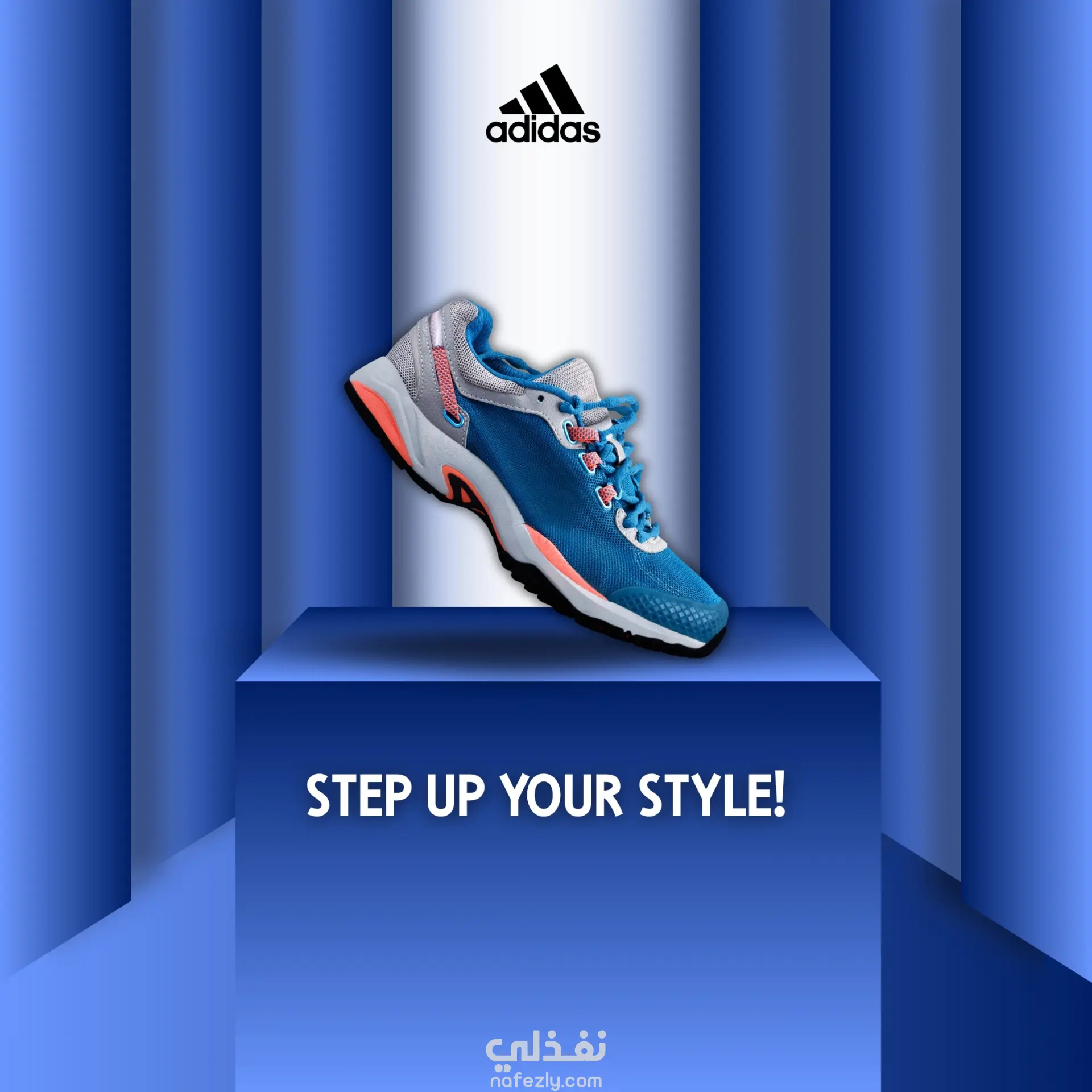 "هذا العمل هو عبارة عن تصميم إعلاني رقمي متكامل (Digital Ad Banner) تم إنشاؤه بغرض الترويج لحذاء رياضي يحمل شعار شركة أديداس (Adidas). يركز التصميم على إبراز المنتج بأسلوب عصري واحترافي، مما يجعله مثاليًا للاستخدام كمنشور على وسائل التواصل الاجتماعي أو كصورة رئيسية في المتاجر الإلكترونية.