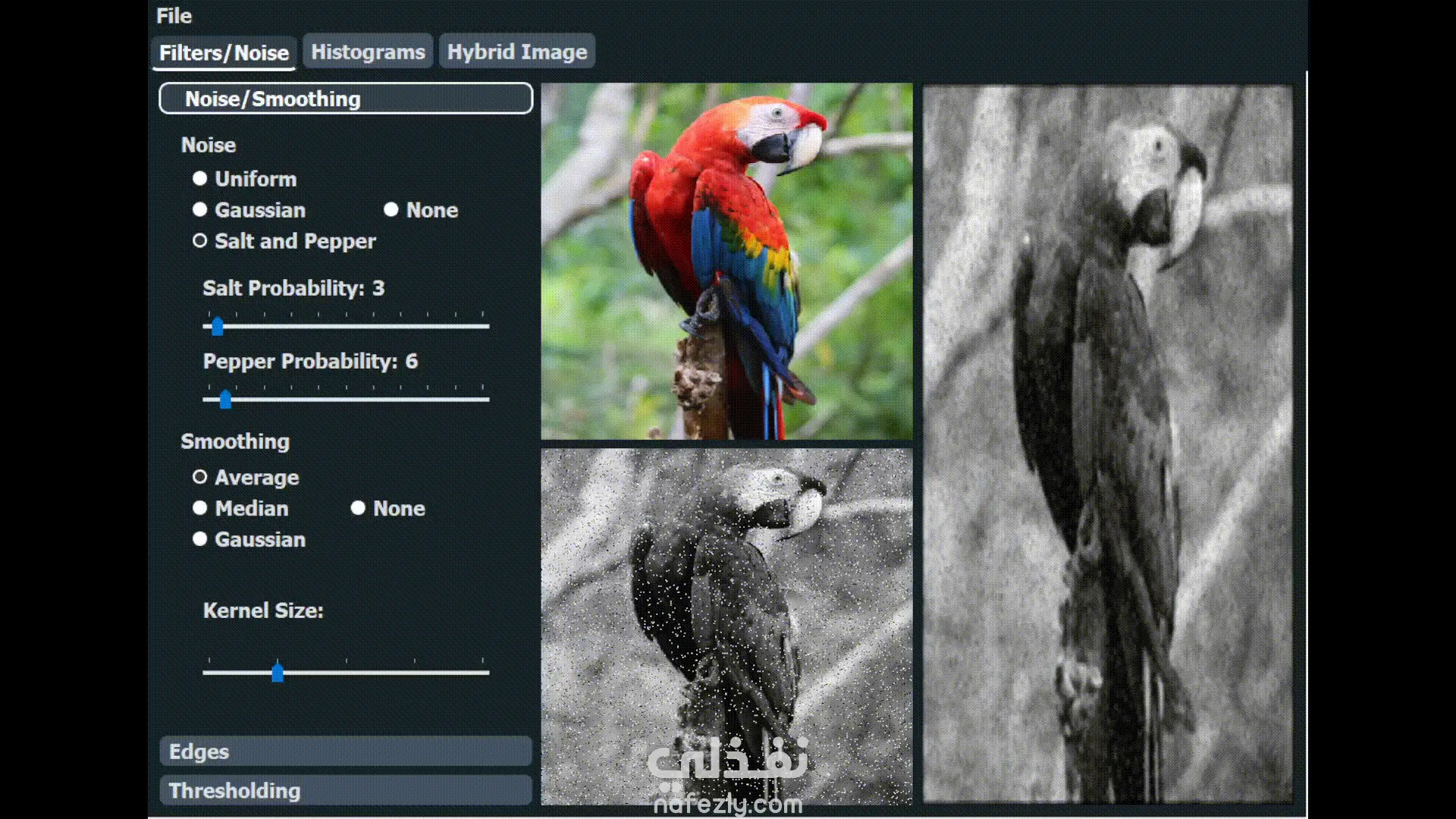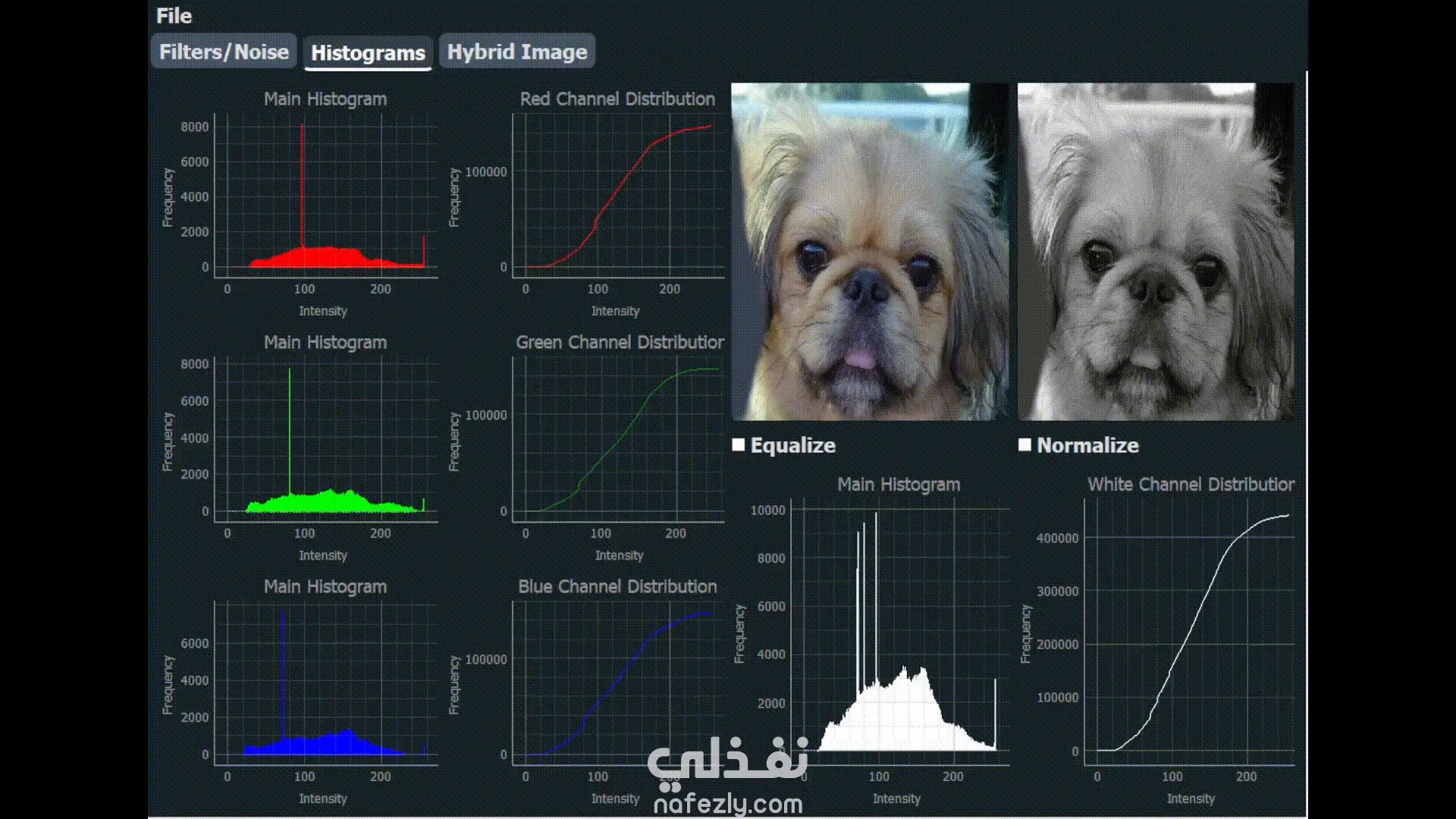 مشروع Imagizer هو تطبيق مكتبي تم تطويره باستخدام مكتبة PyQt لتنفيذ مجموعة متنوعة من خوارزميات معالجة الصور. يتيح للمستخدم التعامل مع الصور العادية (بالألوان أو بتدرجات الرمادي) وتطبيق عدة عمليات عليها، مثل: إضافة الضوضاء (Noise Addition) بأنواعها المختلفة. الترشيح (Filtering) لإزالة الضوضاء وتحسين جودة الصورة. اكتشاف الحواف (Edge Detection) لتحديد حدود الأجسام داخل الصورة. تحليل المدرج التكراري (Histogram Analysis) لفهم توزيع الإضاءة في الصورة. التطبيع (Normalization) و تسوية المدرج التكراري (Equalization) لتحسين التباين. العتبة (Thresholding) لتحويل الصورة إلى صورة ثنائية (أسود وأبيض). تحويل الصورة من ملونة إلى رمادية (Color to Grayscale Conversion). الترشيح في المجال الترددي (Frequency Domain Filtering) باستخدام تحويل فورييه. توليد الصور الهجينة (Hybrid Image Generation) بدمج خصائص صورتين معًا في ترددات مختلفة.