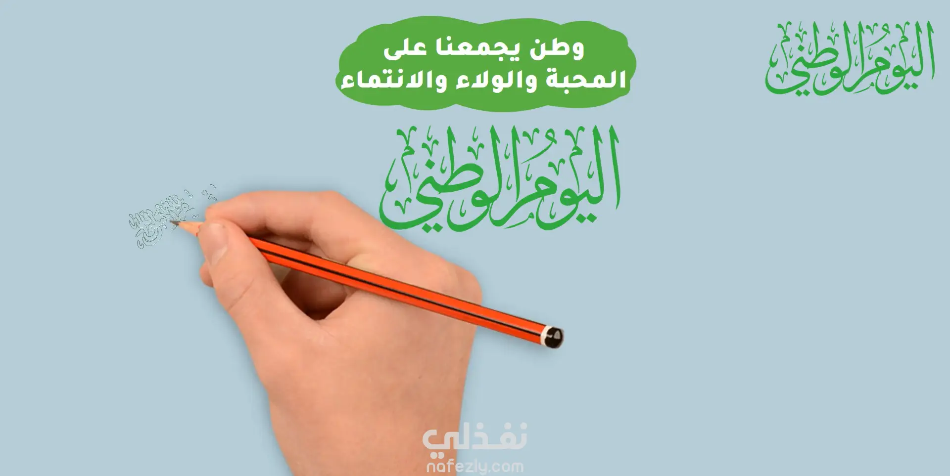 أقدم لك فيديو وايت بورد أنيميشن قصير ومميز للاحتفال باليوم الوطني السعودي: مدة الفيديو: :1 دقيقة. تصميم جذاب يعكس الهوية الوطنية والألوان السعودية. عناوين ورسوم توضيحية تبسط الرسالة وتشد المشاهد. إمكانية إضافة تعليق صوتي أو موسيقى وطنية لإضفاء روح الاحتفال. مناسب للنشر على يوتيوب، إنستغرام، تيك توك، وفيسبوك.