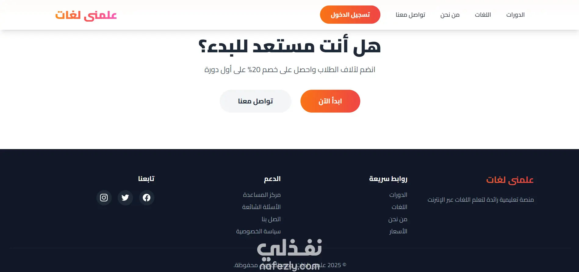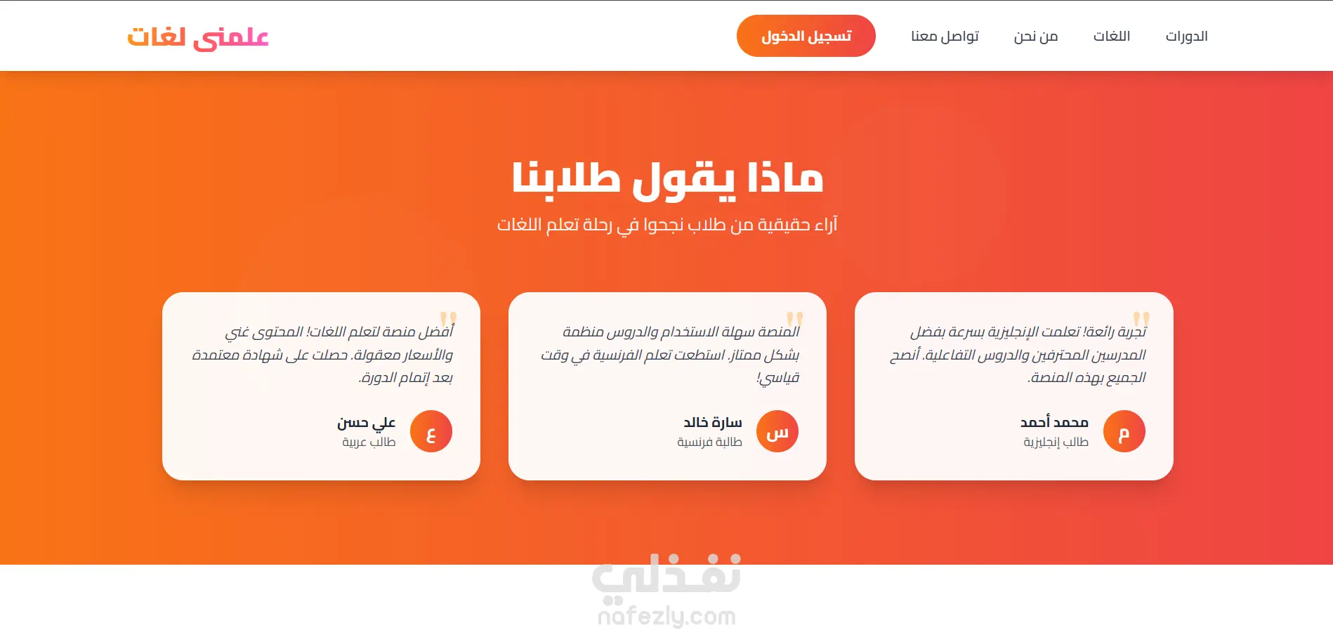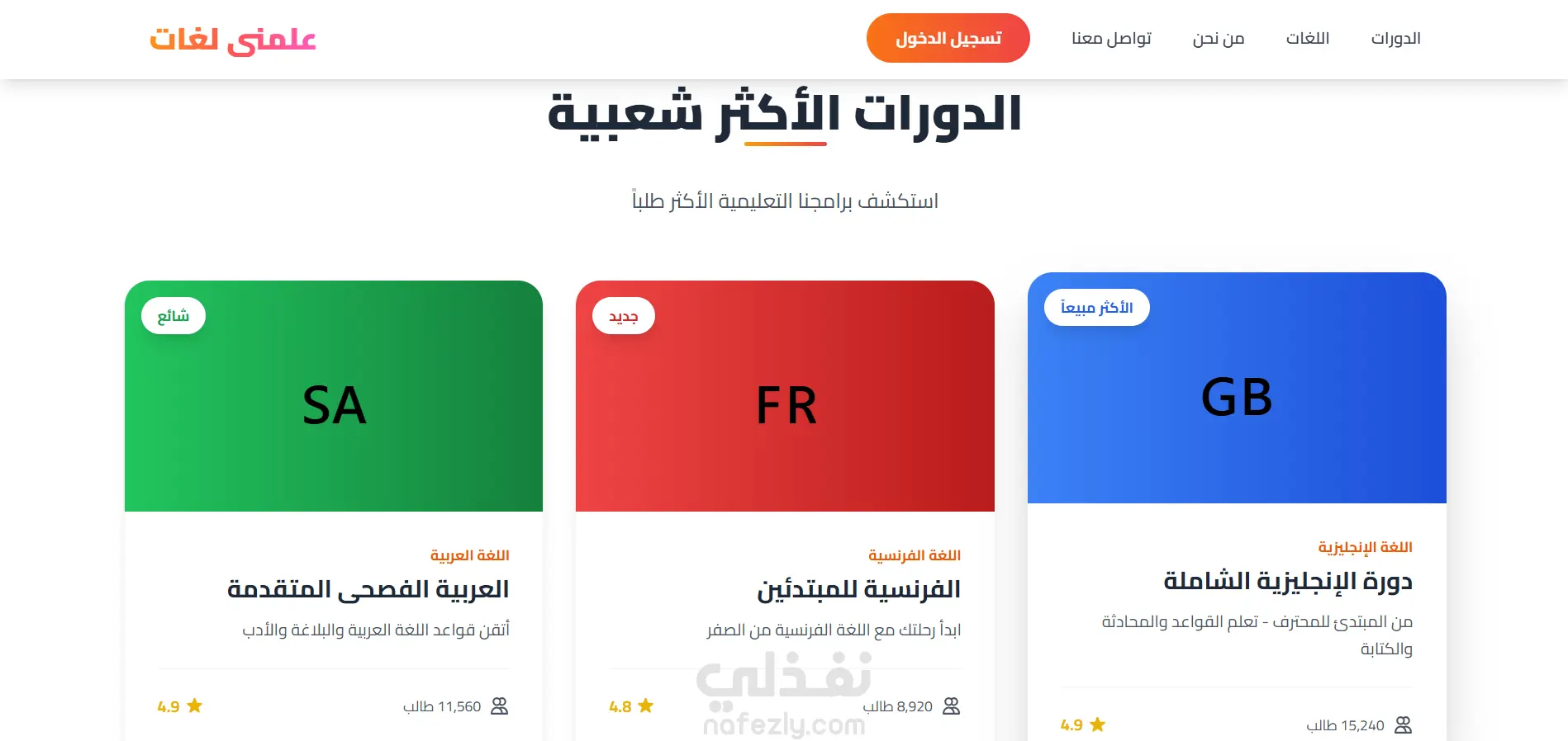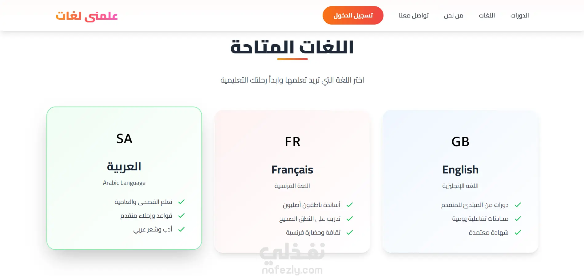 موقع تعليم 3 لغات: العربية و الانجليزية و الفرنسية تم استخدام HTML5 ,Tailwindcss ,javascript