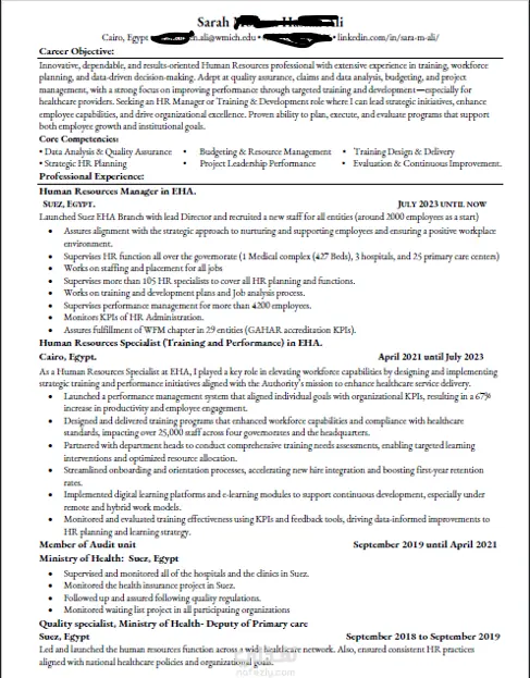 لذلك أحرص على أن تكون سيرتك منسقة، دقيقة، ومبنية باحترافية تعكس خبراتك ومهاراتك وتزيد فرصك في الحصول على مقابلات العمل.