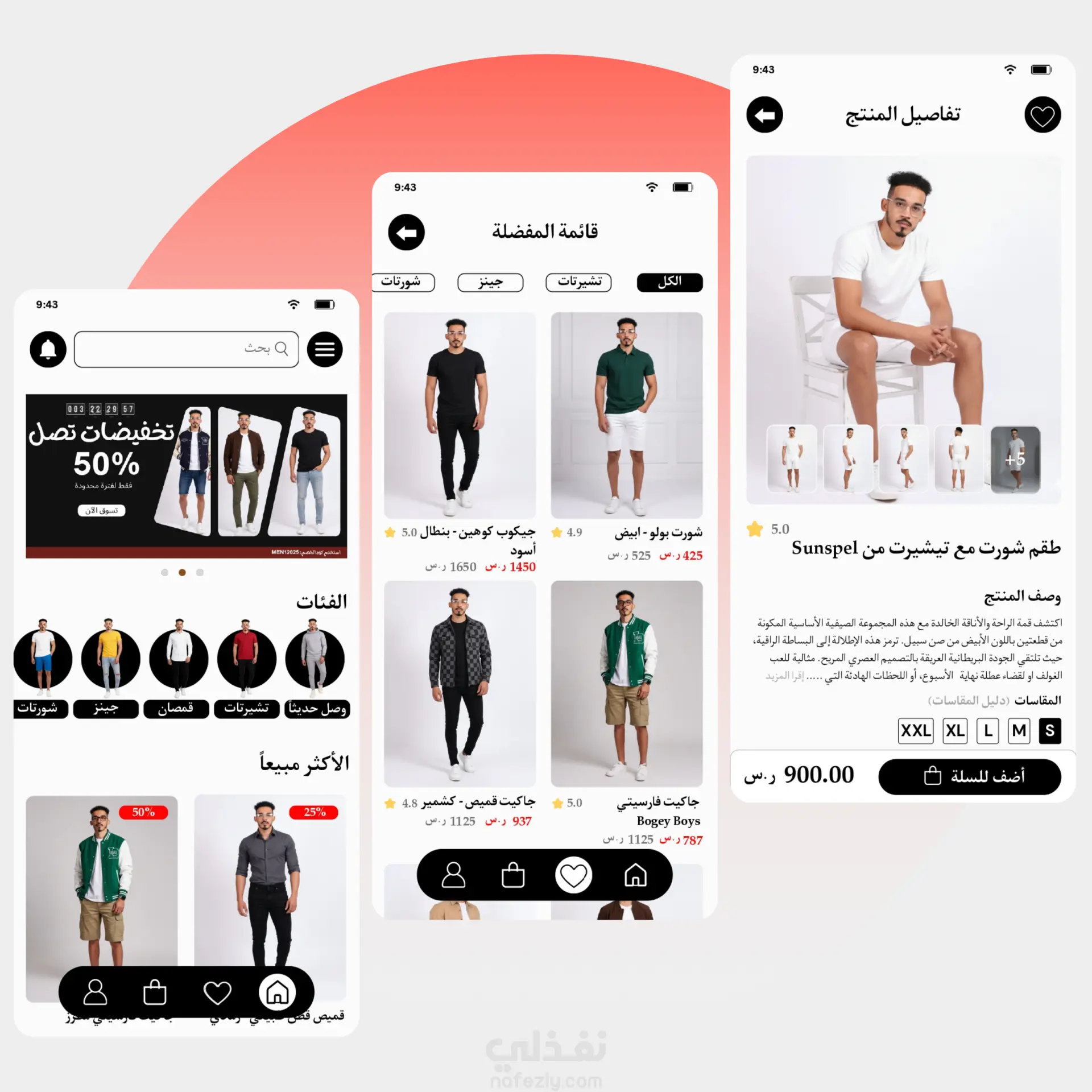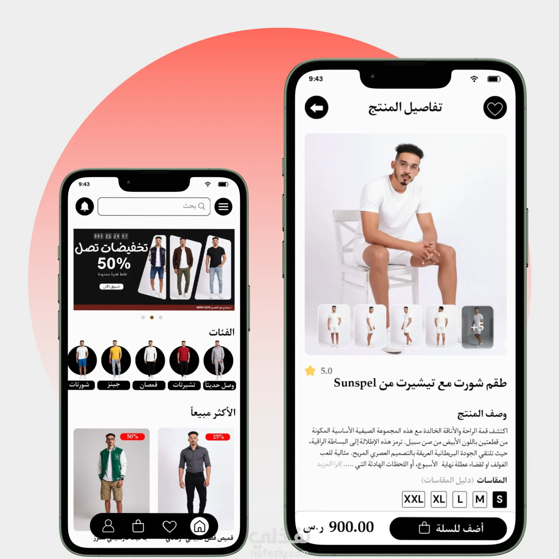 تصميم UI/UX تطبيق متجر أزياء رجالية