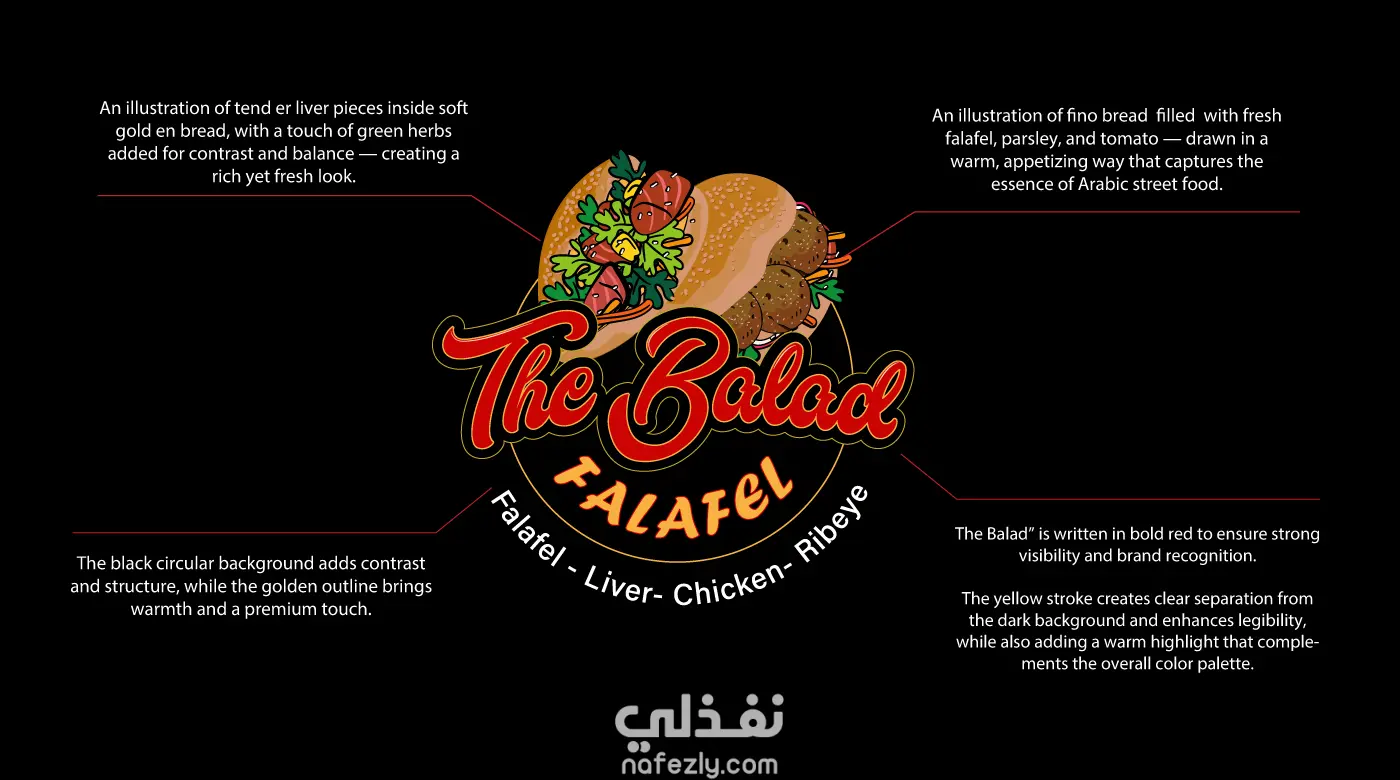 تم تصميم الشعار ليعكس روح الأكل العربي بروح مودرن، باستخدام خطوط واضحة وألوان دافئة تعبّر عن الأصالة والدفء.