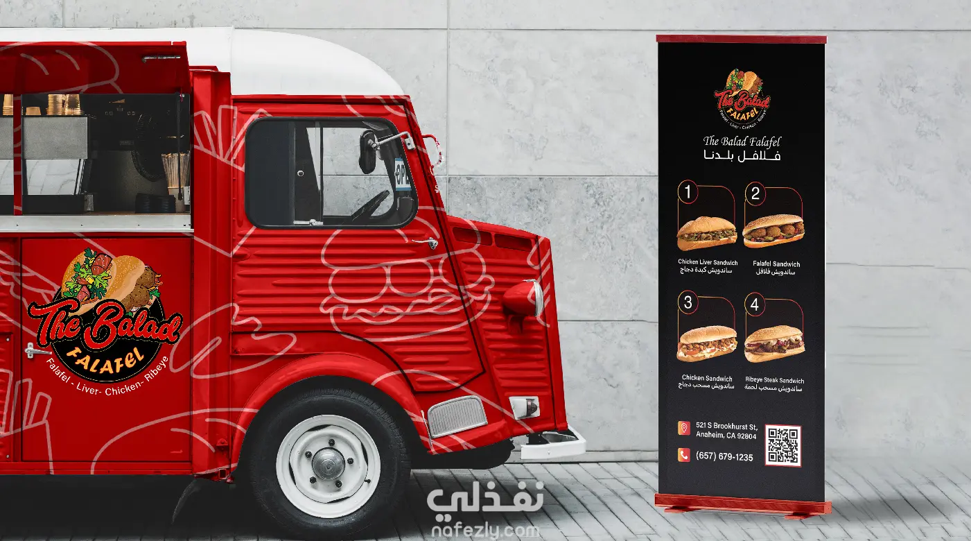 الهوية البصرية تجمع بين الطابع الشعبي للعربات التقليدية وبين أسلوب عرض حديث يناسب السوق الأمريكي ويجذب الجمهور من مختلف الثقافات.