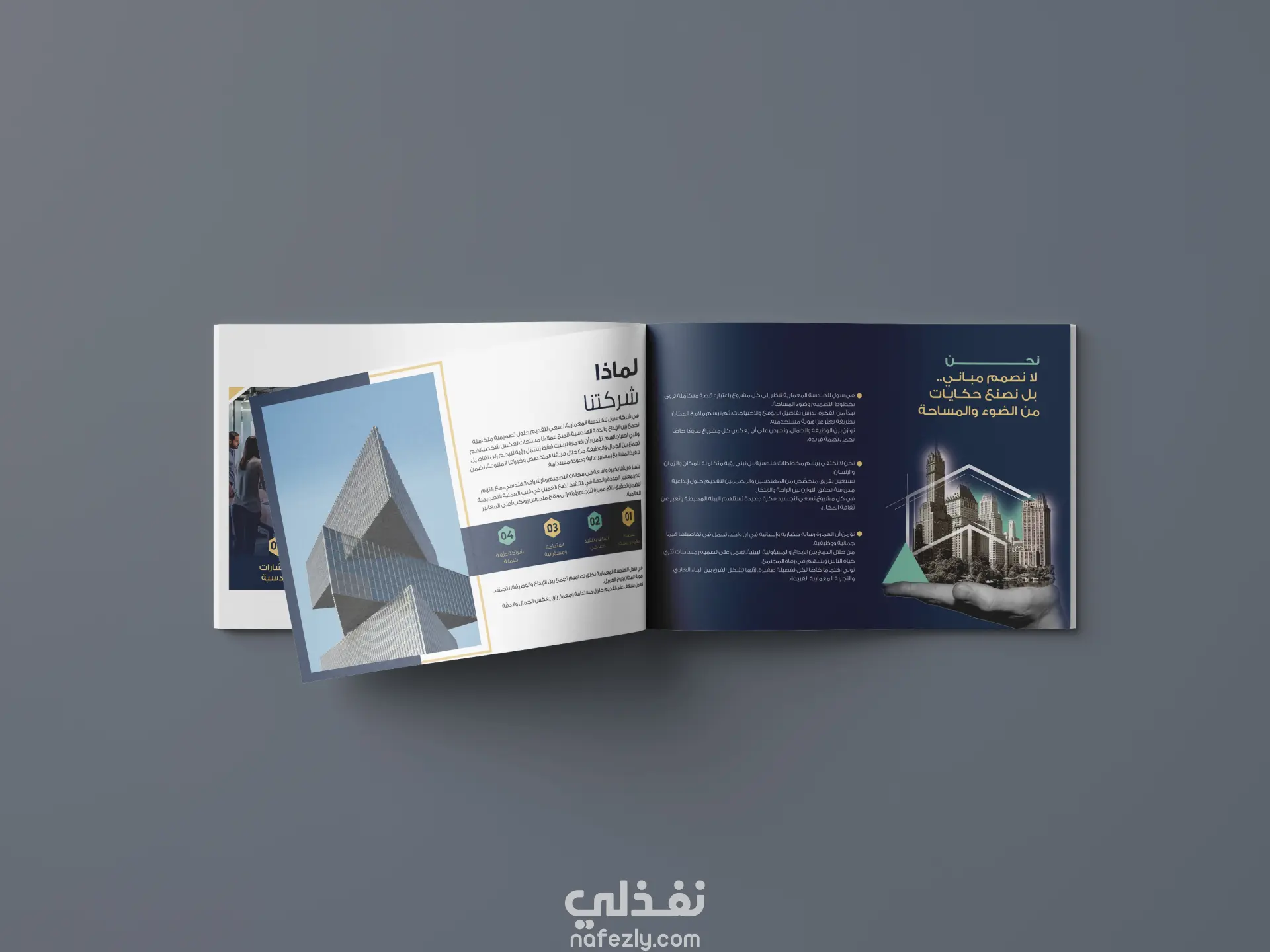 الهدف من التصميم هو تقديم صورة قوية ومهنية للشركة، تُبرز جودة أعمالها وتعزز ثقة العملاء بها، مع الحفاظ على هوية بصرية موحدة تعكس الطابع المعماري الراقي والاستقرار والابتكار.