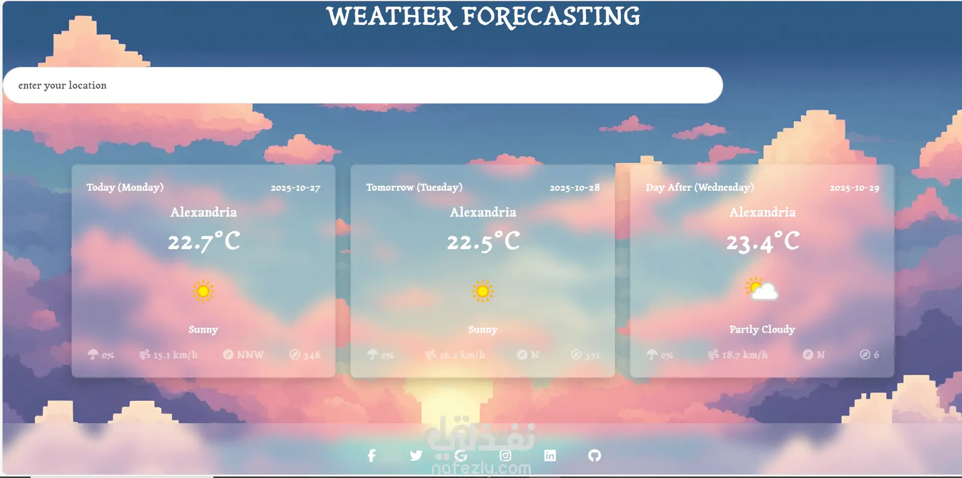 مشروع Weather Forecast Website هو تطبيق ويب تفاعلي يعرض حالة الطقس بشكل مباشر بناءً على المدينة التي يُدخلها المستخدم.