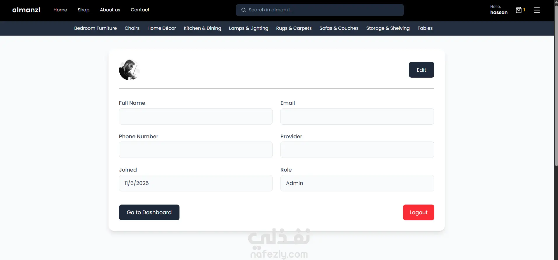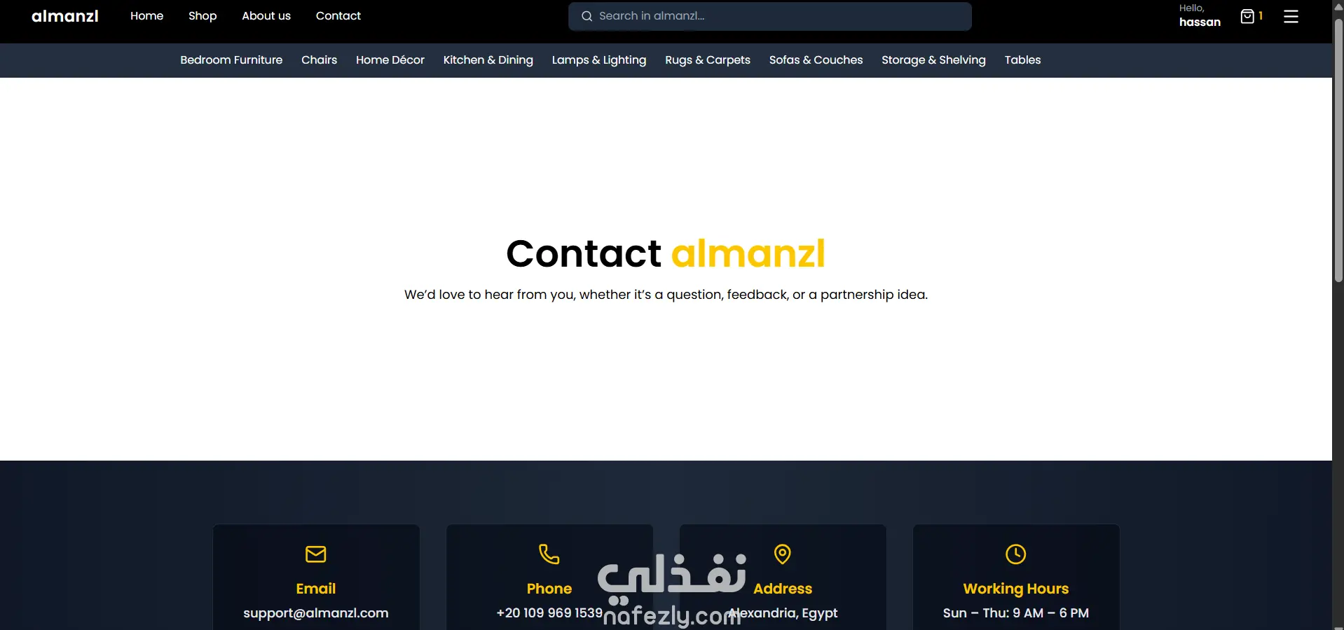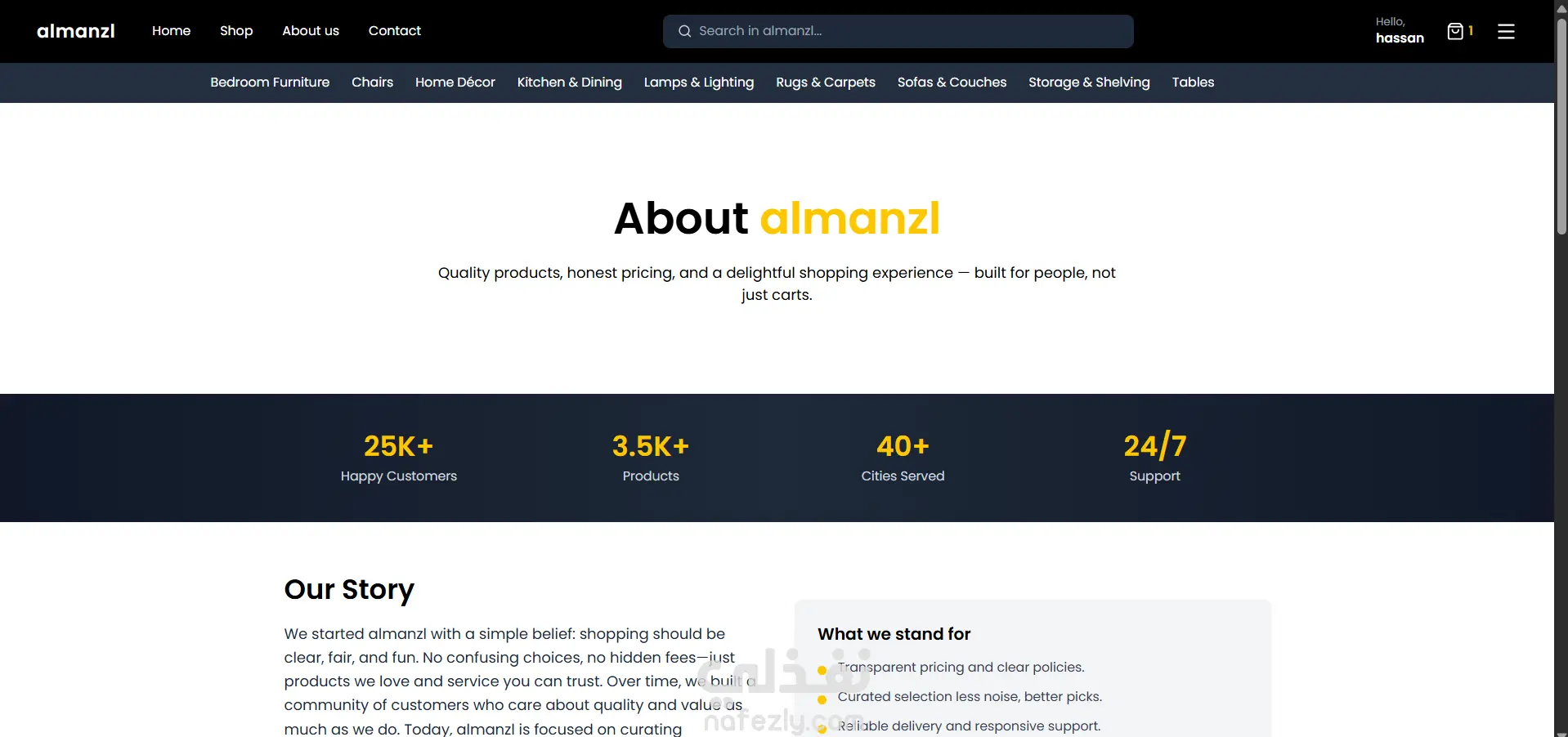 المنزل (Almanzl) هو متجر إلكتروني حديث ومتكامل لبيع الأثاث، مستوحى من تجربة التسوق الأنيقة والمريحة التي توفرها العلامات التجارية الرائدة عالميًا مثل ايكيا (IKEA). يوفر المشروع منصة تفاعلية وسهلة الاستخدام تتيح للمستخدمين تصفح الأثاث والبحث عنه وشرائه عبر الإنترنت بسلاسة تامة.