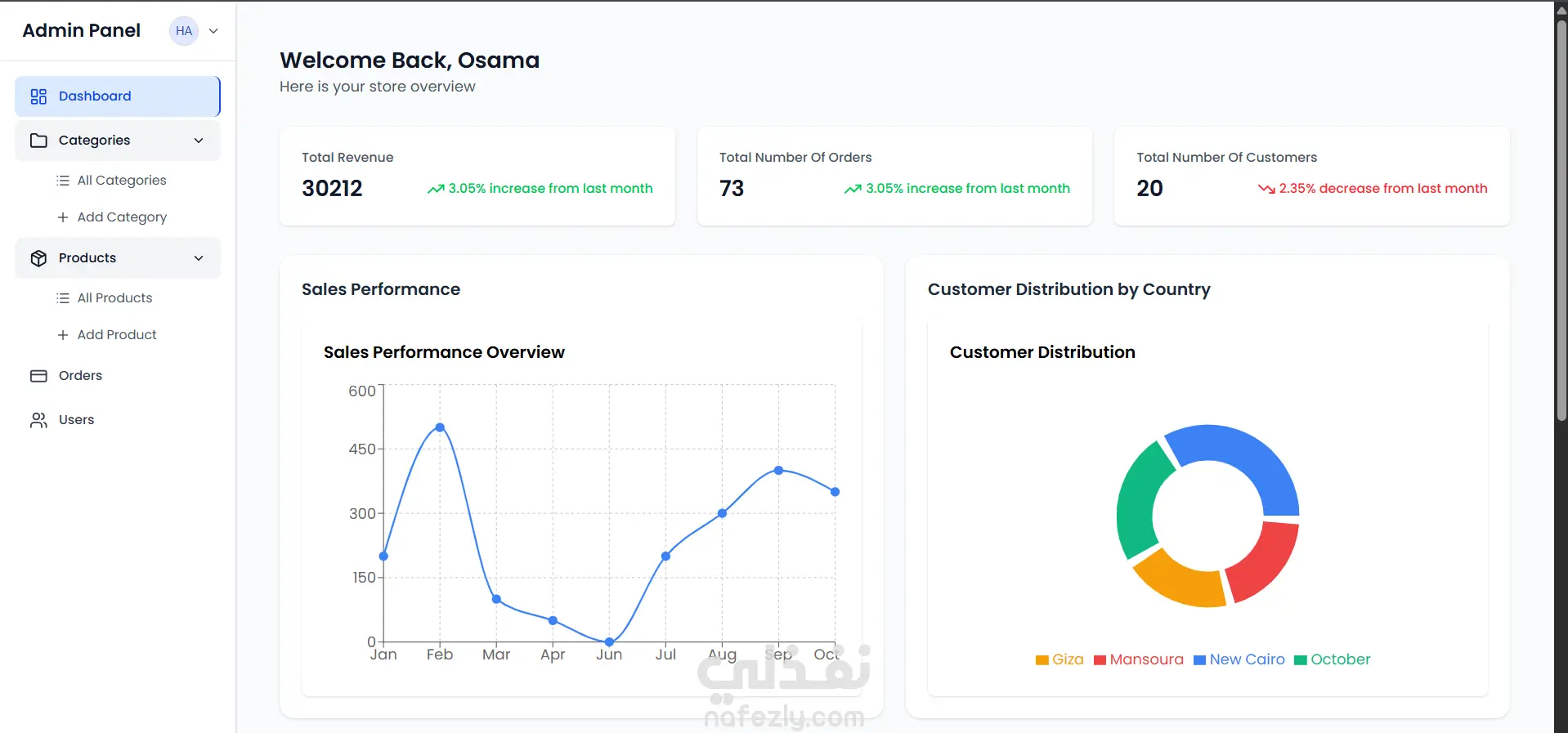 لوحة تحكم للمدير (Admin Dashboard): لإدارة المنتجات، الطلبات، والمستخدمين بكفاءة.