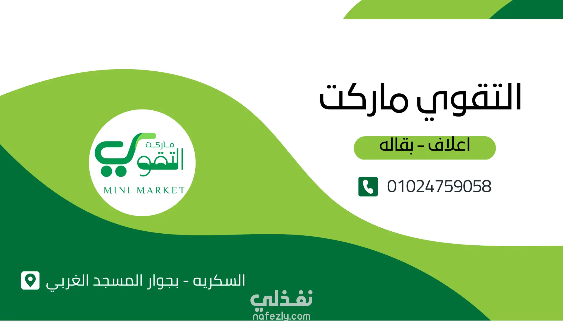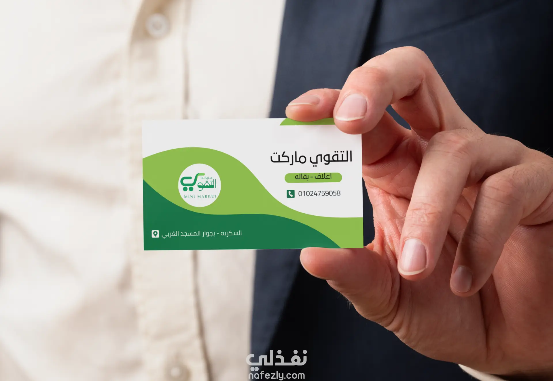 كارت عمل خاص بسوبر ماركت متميز باللون الاخضر ليتوافق مع الوان الشعار ويعبر عن الخضروات والفواكه التي تميز السوبر ماركت