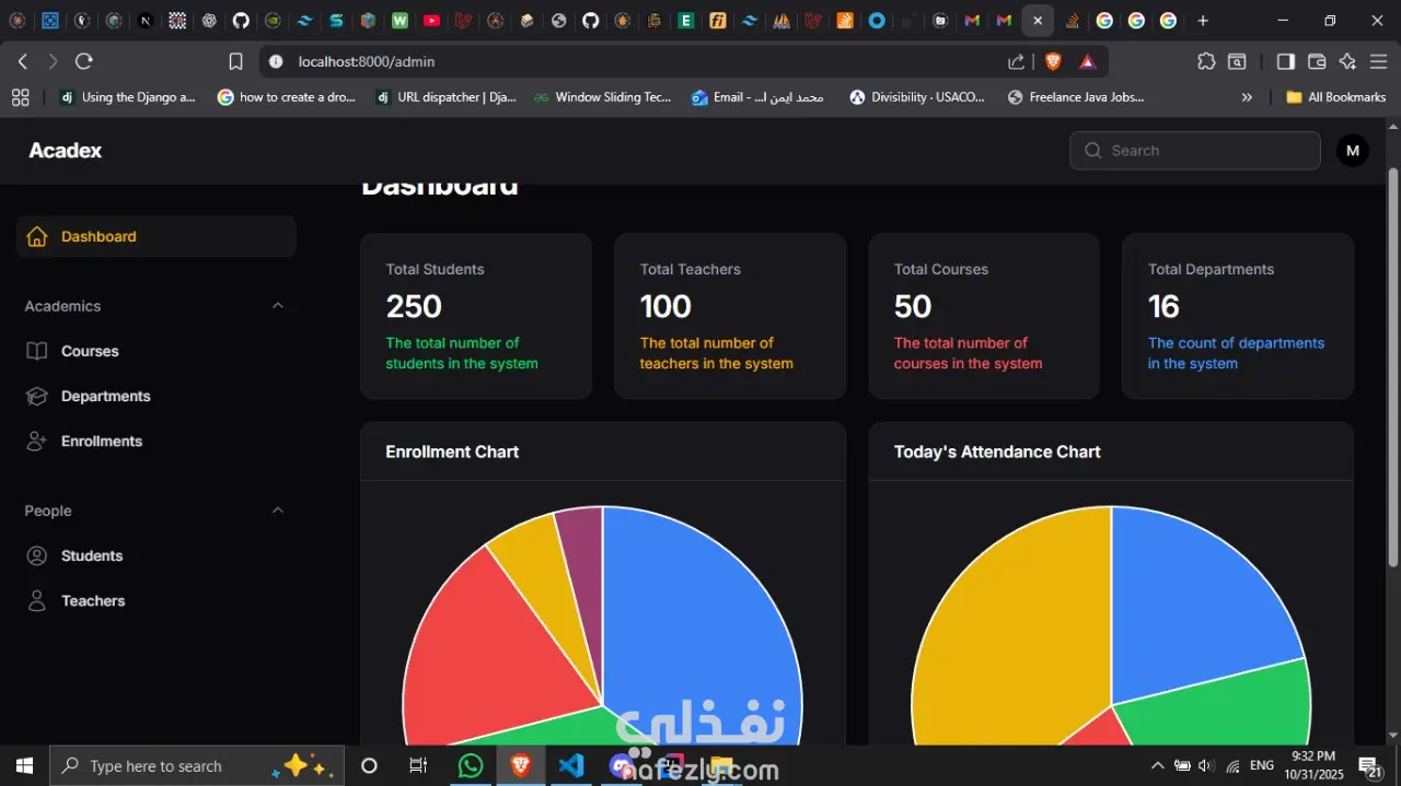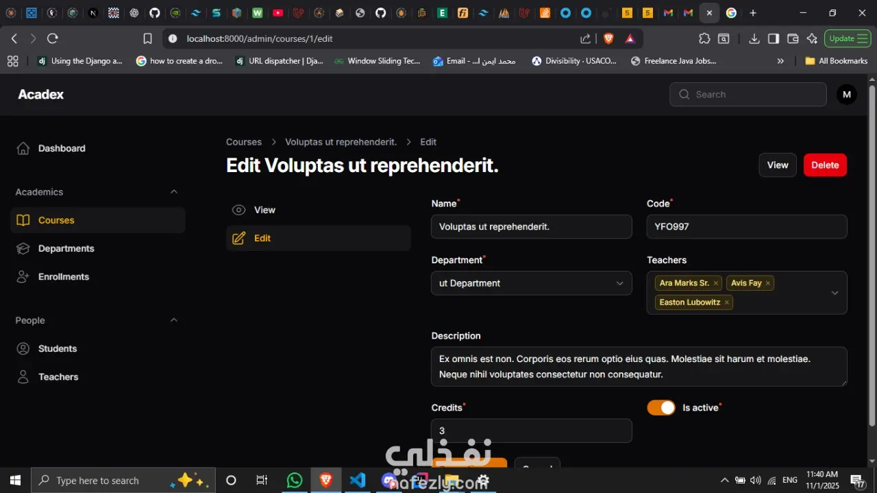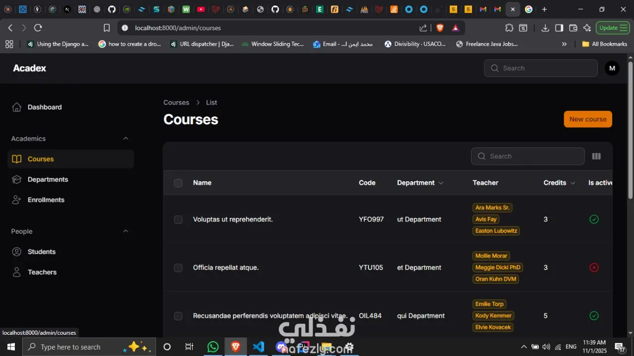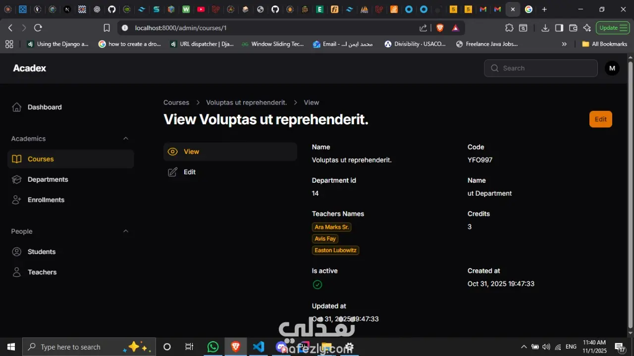 هذا الموقع يساعد في التعيلم, ينظم عمل الجامعات و المدارس حيث يستطيع الطلبة المشاركة فيها و التعلم منها و العثور علي درجاته. المستخدمين قد يكونوا مدرسين او طلبة اذا كانوا مدرسين يتم تحديد في اي قسم هم و المواد التي سيقومون بالعمل فيها اذا كان بصفة المدرس او المساعد, و اذا كان طالبا فالطالب يستطيع الاشتراك في المواد او ينسحب منها, و كل ذلك يمكن تنظيمه من خلال الadmin كذلك