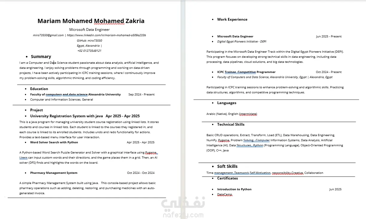محتاج CV يلفت الانتباه ويكون جاهز للتقديم على الوظائف أو التدريب؟ أنا أقدّم خدمة تصميم سيرة ذاتية احترافية، منظمة، وATS-ready مواصفات الخدمة: تصميم CV جاهز لتخطي أنظمة ATS (Applicant Tracking System) تنسيق احترافي وواضح يبرز مهاراتك وخبراتك مناسب للطلاب، الخريجين، أو أي شخص محتاج سيرة ذاتية قوية تسليم بصيغتين: PDF جاهز للطباعة والعرض Word (.docx) للتعديل بسهولة