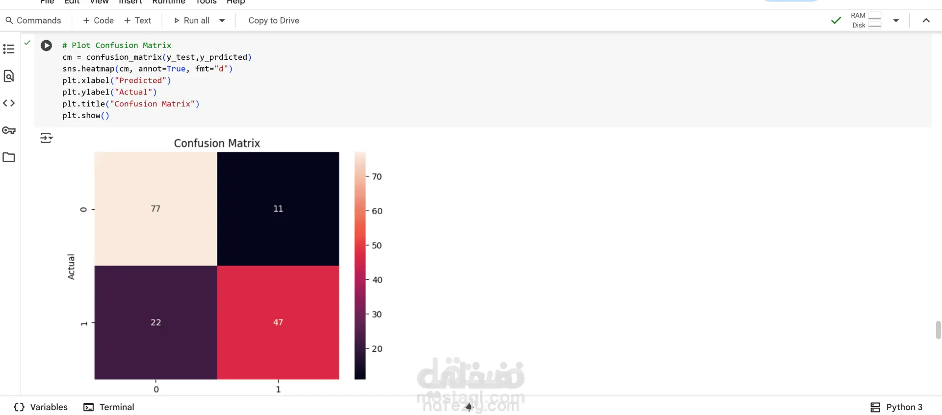 نوع العمل: مشروع تعلم آلة (تصنيف ثنائي – Binary Classification). ميزاته: يطبّق نموذج انحدار لوجستي لتوقع إمكانية النجاة لأفراد ركاب Titanic. يستخدم بيانات فعلية من المنافسات المعروفة (مثل بيانات Kaggle). يعرض خطوات تحليلية متكاملة: من تنقية البيانات إلى التقييم النهائي. طريقة تنفيذه: استخدمت Python على بيئة Google Colab، مع مكتبات Pandas، NumPy، وScikit-learn. بدأت بمعالجة البيانات (التعامل مع القيم المفقودة، تحويل المتغيرات إلى صيغ مناسبة). طبّقت نموذج الانحدار اللوجستي. قيّمت الأداء باستخدام مؤشرات مثل الدقة (Accuracy) ومصوفة الالتباس (Confusion Matrix). (لو موجود) أضفت visualizations مثل الرسوم البيانية للتوزيعات أو منحنيات ROC – ده بيبرهن مهارتك في التمثيل البصري للنتائج.