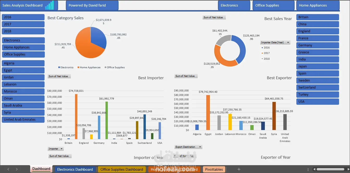 تحليل بيانات لمبيعات اجهزة اليكترونية و ادوات مكتبية - Excel