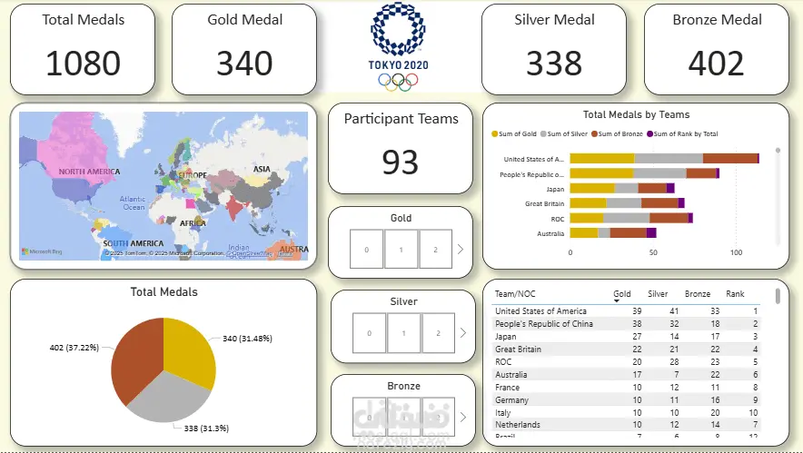 عرض شامل لتاريخ وإنجازات الألعاب الأولمبية بطريقة بصرية تفاعلية.