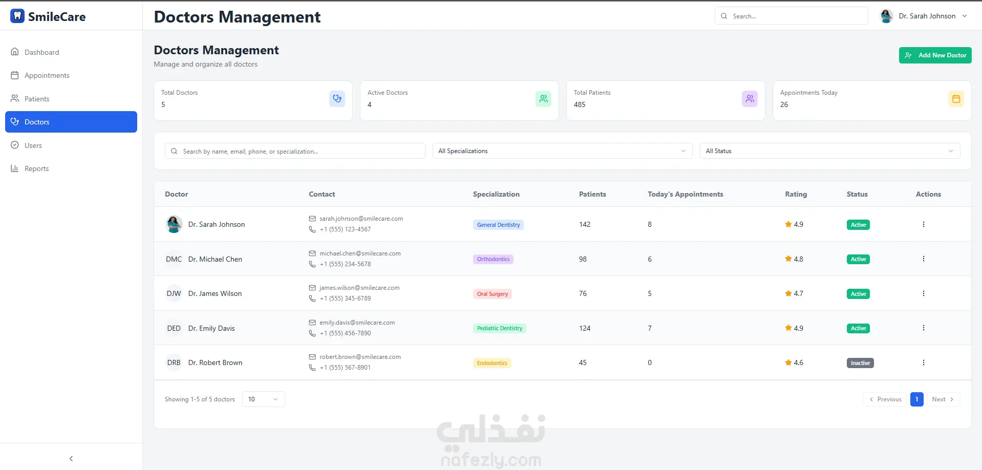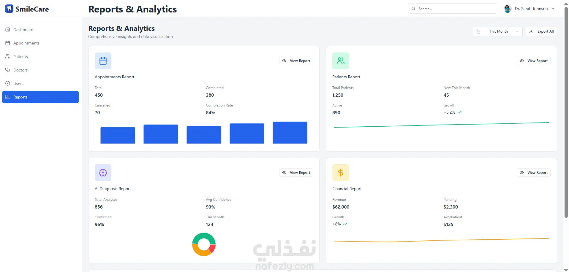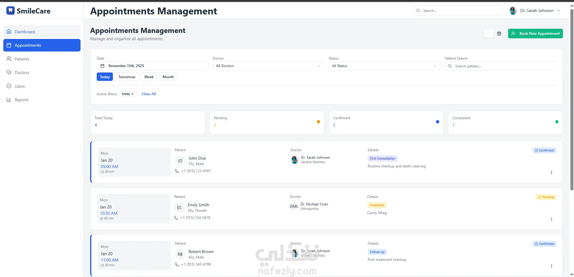 Project Description: SmileCare is a full-stack dental clinic management system developed using ASP.NET Core Web API for the backend and Angular for the frontend. The system is designed to streamline clinic operations by managing patients, appointments, and medical records through a secure and intuitive web interface. Key Features Patient management (add, update, soft delete). Appointment scheduling and tracking. Role-based access control (Admin, Doctor, Receptionist, Patient). Secure authentication using JWT tokens. Dashboard with real-time clinic insights. CRUD operations for all core entities. Responsive, clean, and user-friendly Angular interface.