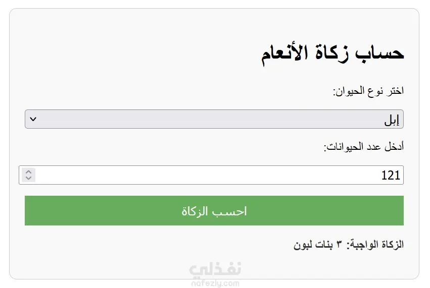 This project is a web-based Livestock Zakat Calculator that helps users determine the obligatory zakat on animals such as camels, cows, and sheep. The user selects the type of livestock, enters the quantity, and the tool automatically calculates the required zakat based on Islamic rules. The interface is simple, clear, and designed for quick, accurate zakat computation.