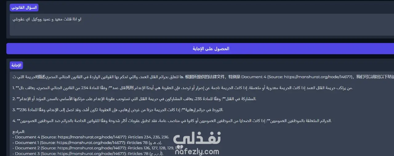 مشروع مساعد قانوني ذكي (AI Legal Assistant for Egyptian Laws)