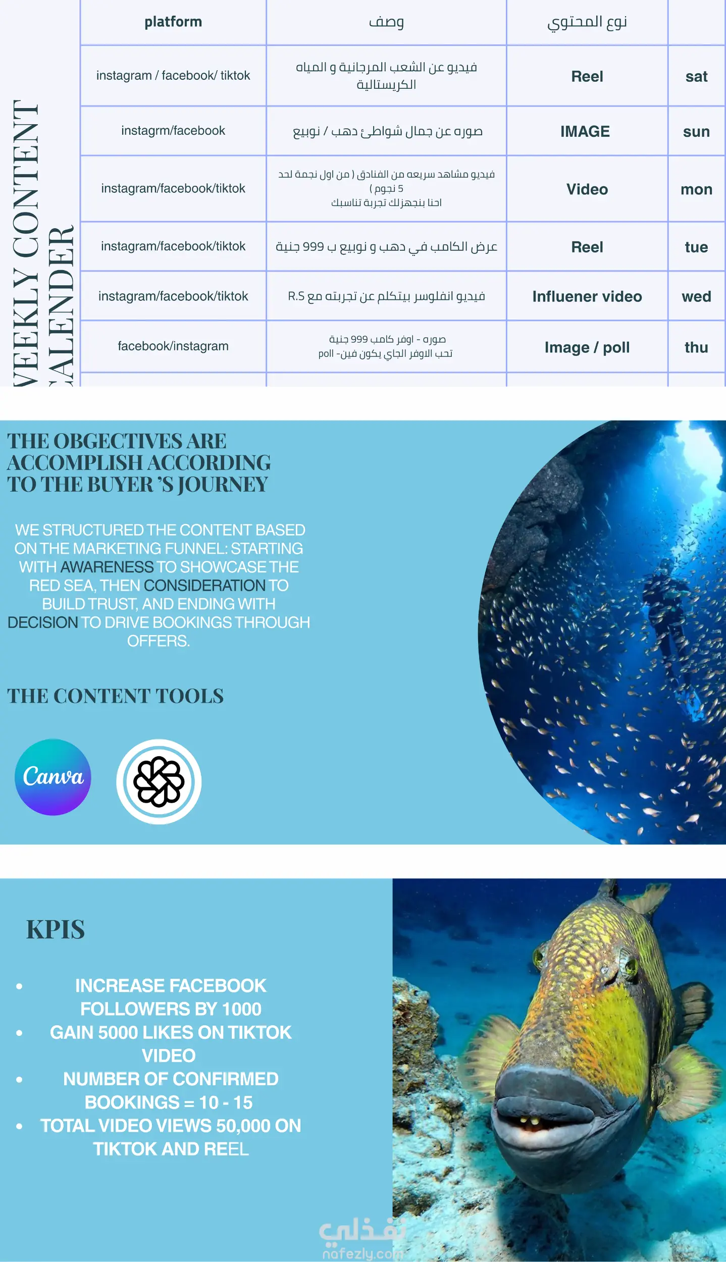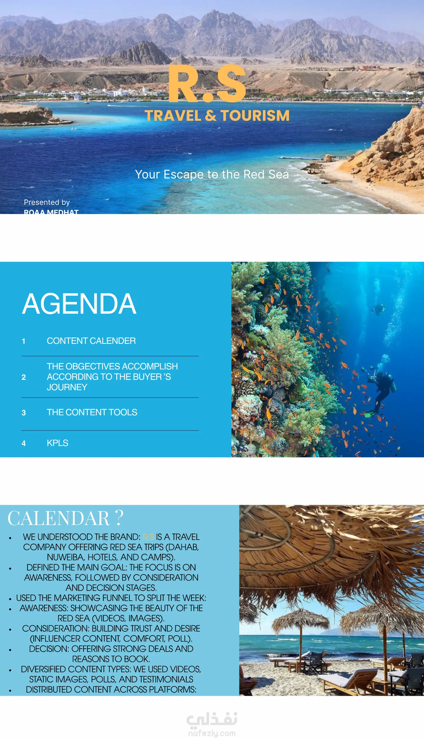 R.S يعمل في مجال السياحة. كان الهدف من المشروع وضع خطة تسويقية شاملة لزيادة الوعي بالبراند وتحقيق نمو في المبيعات. قمت بإعداد جدول محتوى منظم للنشر على المنصات المختلفة، مع تحديد مؤشرات قياس واضحة مثل الوصول، التفاعل، ونسب التحويل لقياس الأداء بدقة. كما تم وضع استراتيجية تسويق تعتمد على تعزيز الهوية، استهداف شرائح جديدة، وتحسين التواجد الرقمي. من خلال تحليل نقاط القوة والضعف والفرص والتهديدات ظهر أن البراند يتميز بجودة منتجاته وخدماته، بينما يعاني من ضعف الانتشار، مع وجود فرص كبيرة للنمو الرقمي في مواجهة منافسة قوية