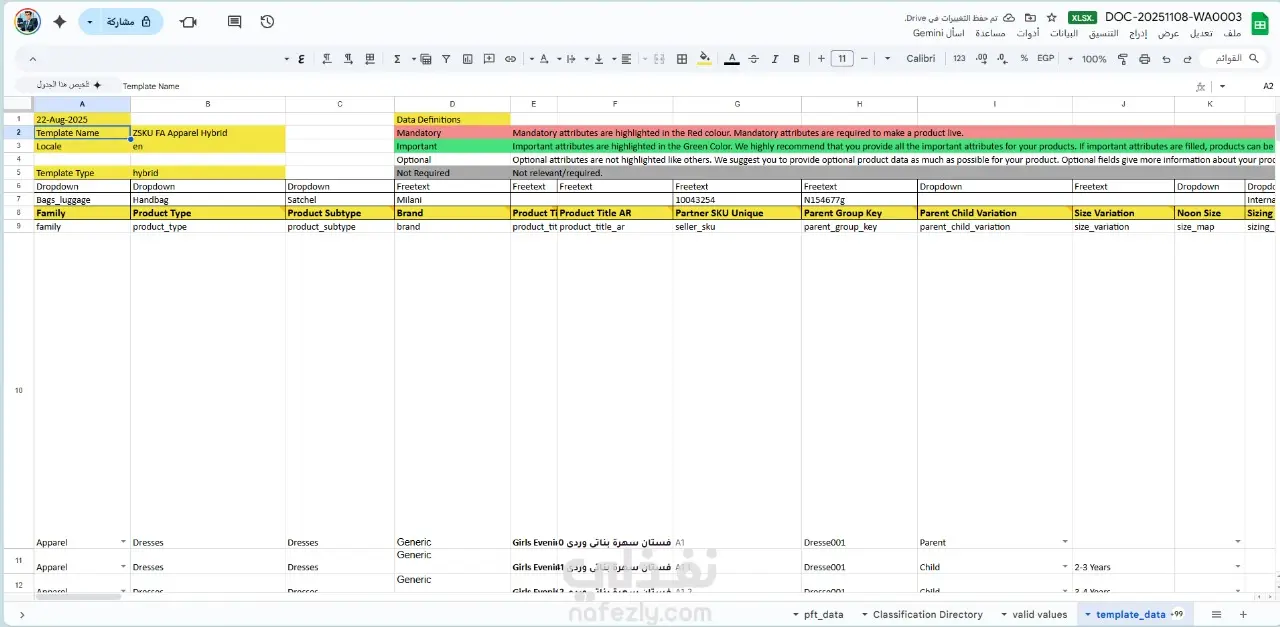 ادخال البيانات وتنسيقها