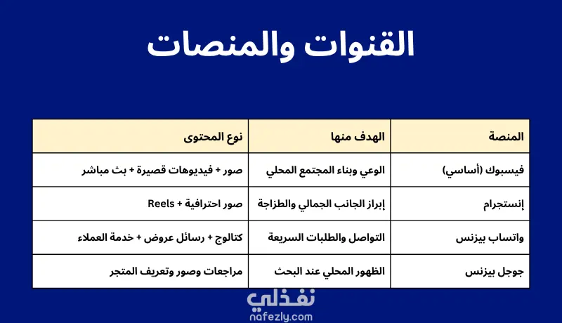 تحديد القنوات المثالية لنشاطك (فيسبوك – إنستجرام – تيك توك – لينكدإن…)، وكيفية استخدام كل قناة بذكاء.