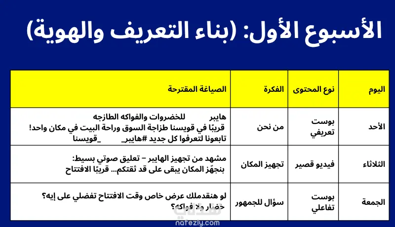 تشمل أنواع المحتوى المناسبة لنشاطك، وأفكارًا قوية وجذابة، وطريقة تقديم المحتوى للوصول للعملاء بأفضل طريقة ممكنة.