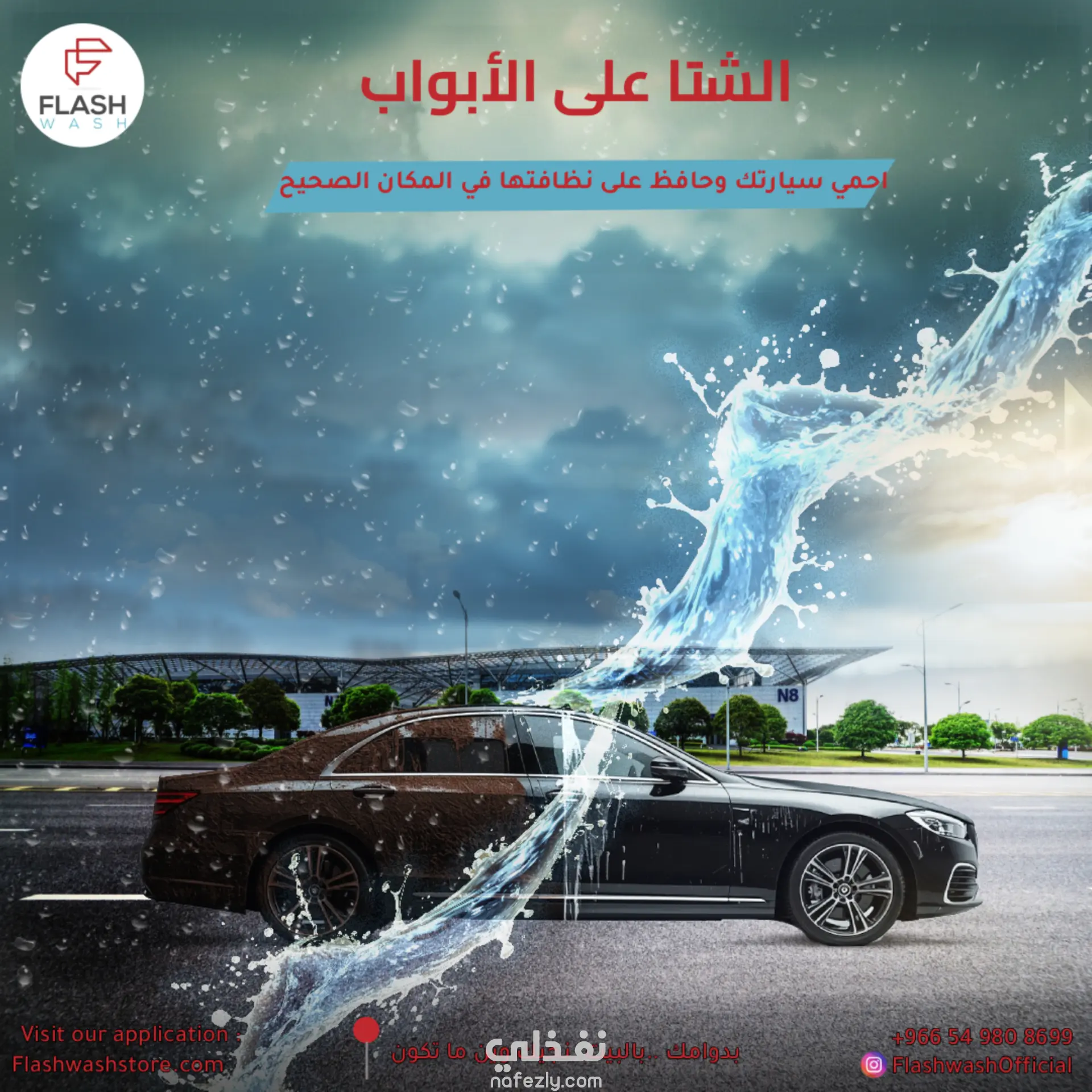 تصميم بوست سوشيال ميديا لمغسلة سيارات متنقلة