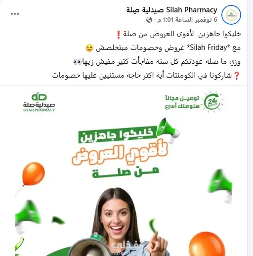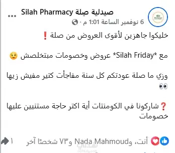 طلب مني تصميم بوست تشويقي لعروض الجمعة البيضاء لصيدلية خليكوا جاهزين لأقوى العروض من صلة❗ مع *Silah Friday* عروض وخصومات مبتخلصش 😉 وزي ما صلة عودتكم كل سنة مفاجأت كتير مفيش زيها👀 ❓شاركونا في الكومنتات أية اكتر حاجة مستنيين عليها خصومات