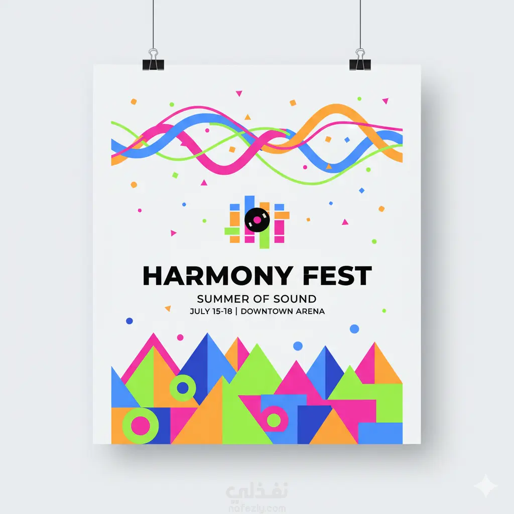 بوستر إعلاني عصري لمهرجان موسيقي أسلوب Flat Design،