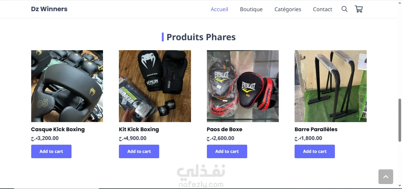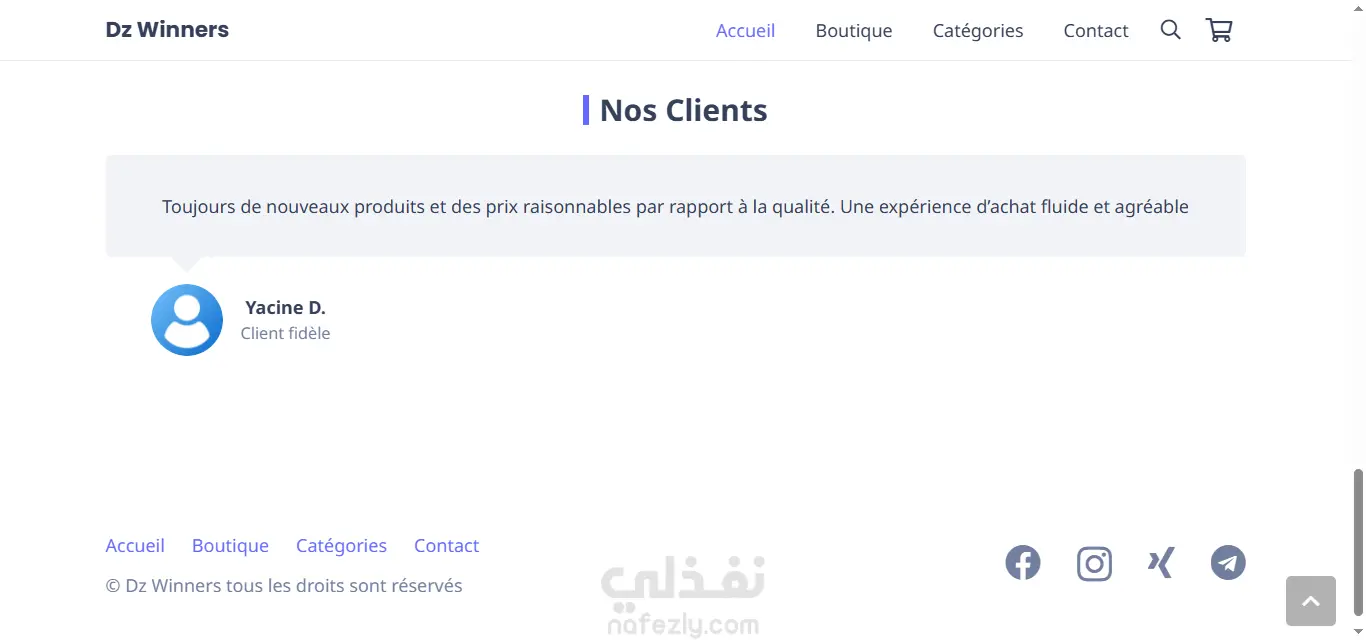 أما بالنسبة للصفحات الأخرى فنجد : صفحة المتجر - صفحة الفئات - صفحة التواصل و السلة