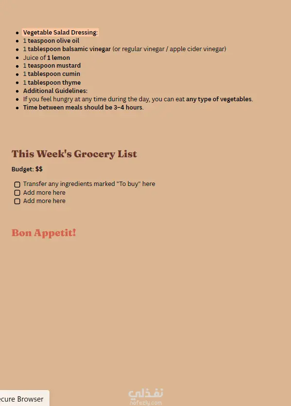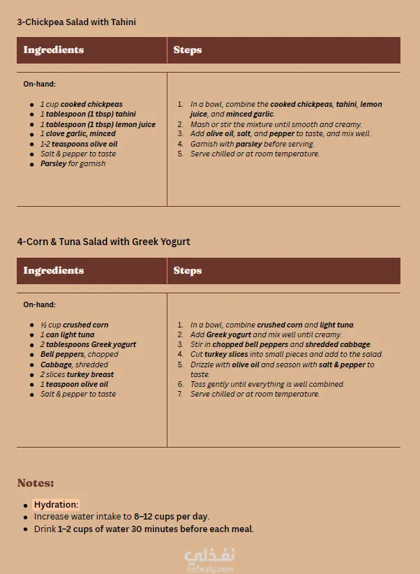 دليل تغذوي مصغر: خطة وجبات + وصفات صحية + تنظيم بصري