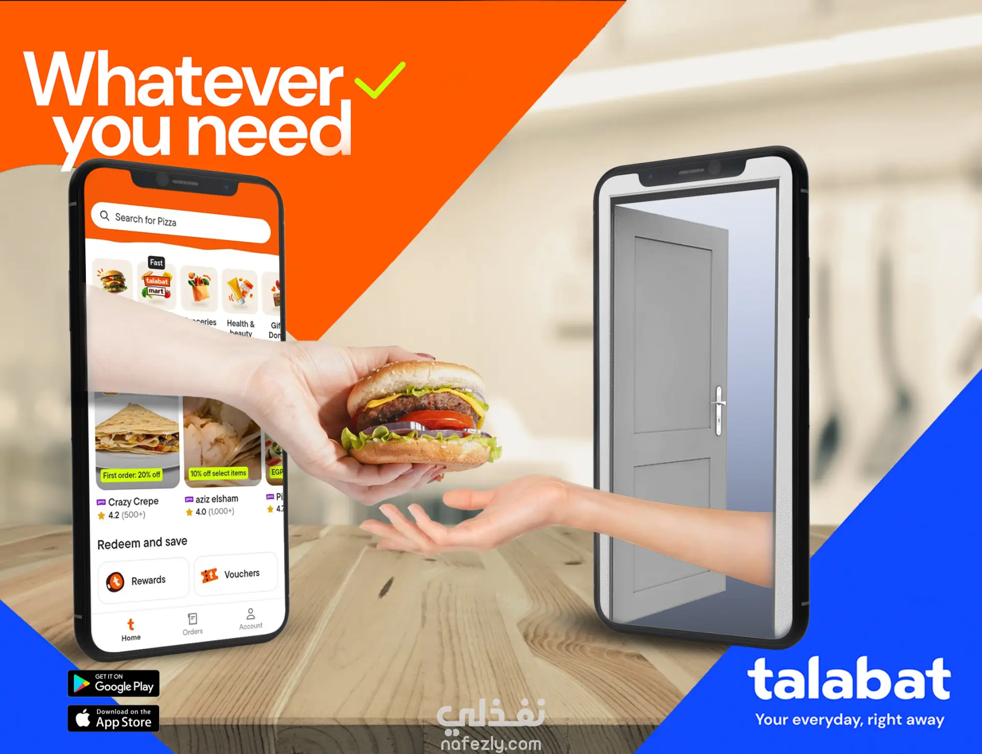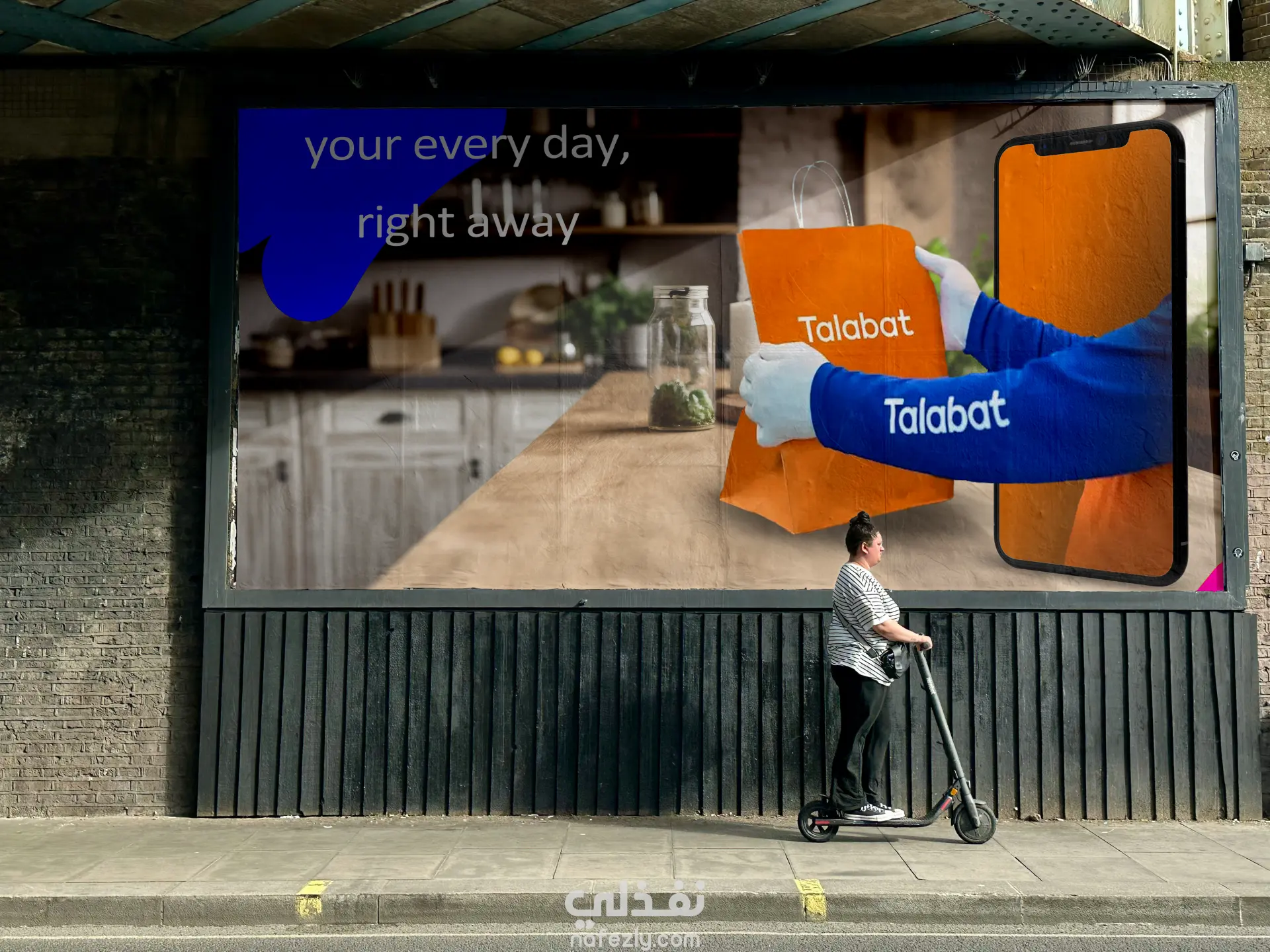 تصميم إعلان دعائي تجريبي (Spec Ad) لمنصّة Talabat بفكرة Pop-Out لإظهار خروج عامل التوصيل من شاشة الهاتف بشكل ديناميكي.