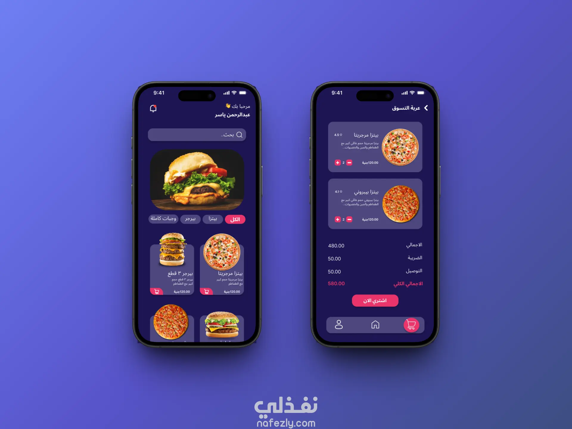 تصميم بسيط وجذاب بألوان دافئة وصور واضحة، يسهل تصفح المطاعم واختيار الوجبات بسرعة، مع تجربة طلب ودفع سلسة.