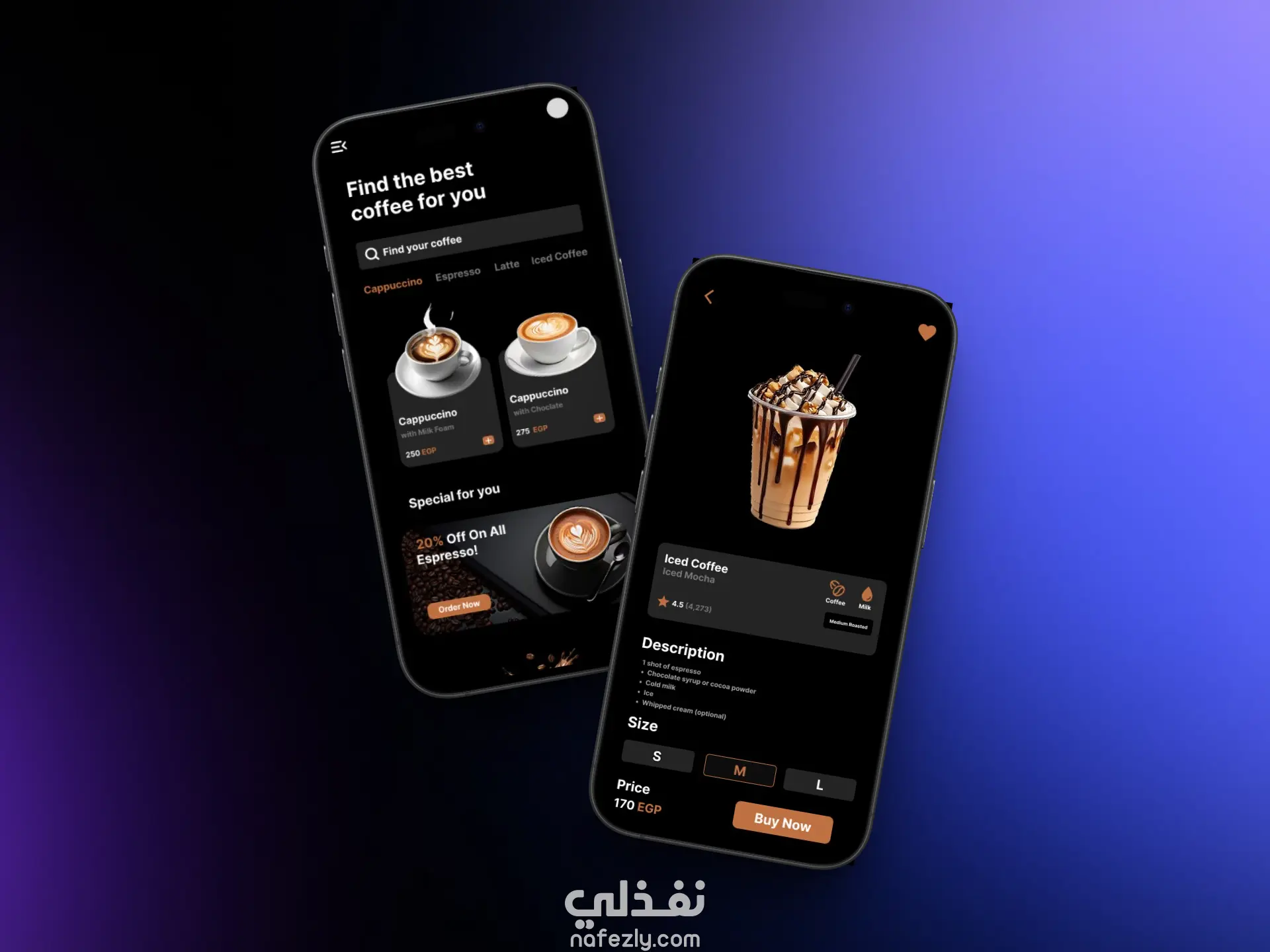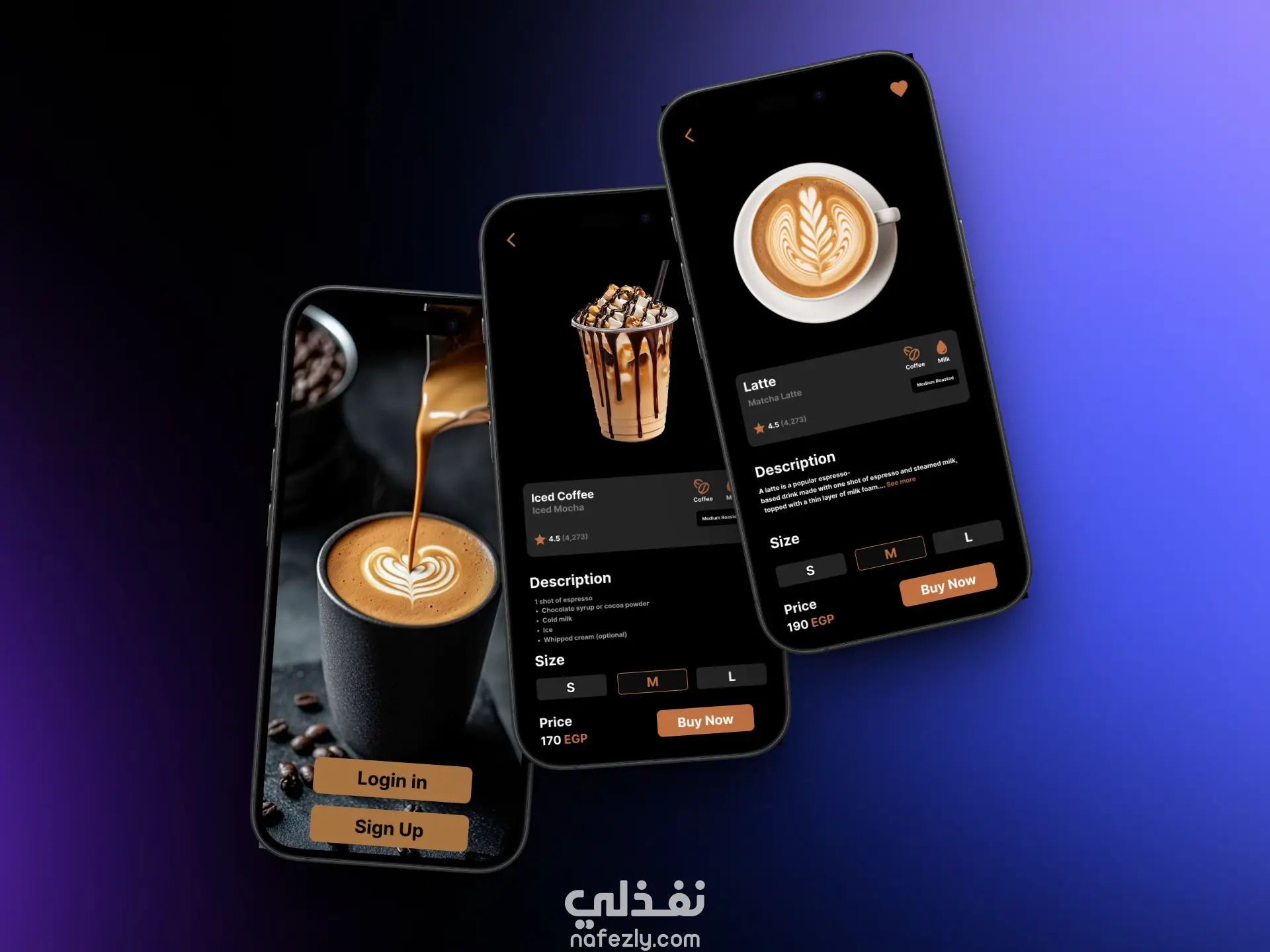 تصميم بسيط وجذاب بألوان دافئة وصور واضحة، يسهل تصفح المشروبات واختيارها بسرعة، مع تجربة طلب ودفع سلسة.