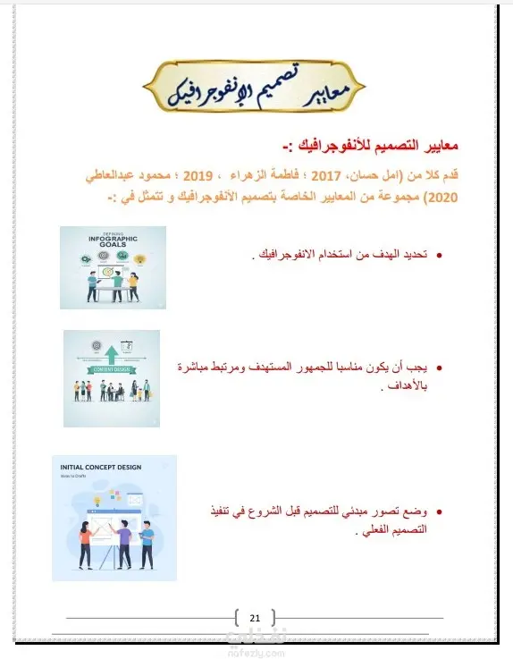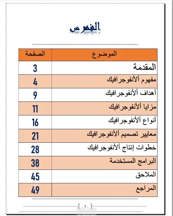 بحث علمى عن الانفوجرافيك التعليمى مكون من :- غلاف - فهرس - مفهوم ألأنفوجرافيك - أهداف ألأنفوجرافيك - مزايا ألأنفوجرافيك - أنواع ألأنفوجرافيك - معايير تصميم ألأنفوجرافيك - خطوات إنتاج ألأنفوجرافيك - البرامج المستخدمة - الملاحق - المراجع