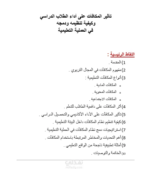 بحث اكاديمي عن تأثير المكافأت على أداء الطلاب الدراسي