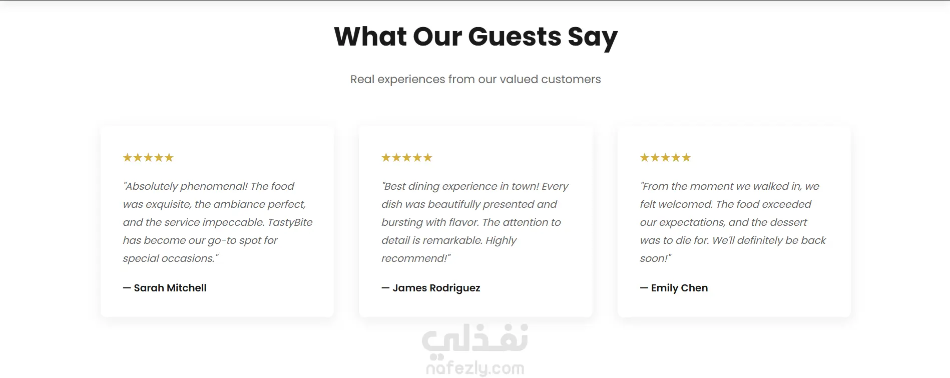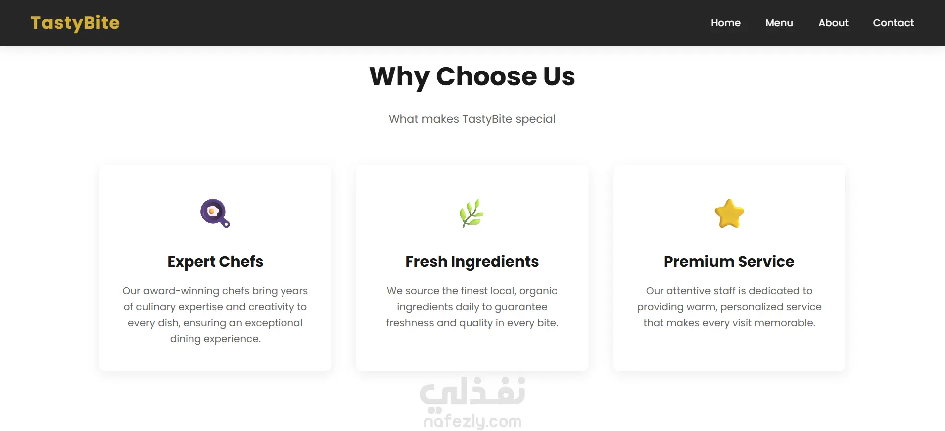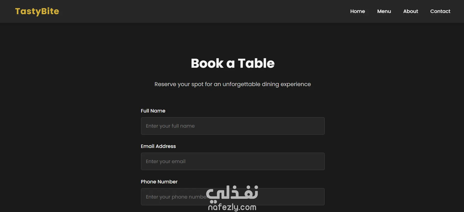 The restaurant webpage features a clean and visually appealing design that highlights the restaurant’s identity. At the top, there is a navigation bar with links to key sections like Menu, About, and Contact. The page includes a hero section with a welcoming message and a high-quality image of the restaurant. The Menu section showcases dishes with images and prices in a clear and organized layout. There’s also an About section with a brief introduction to the restaurant, and a Contact section with a contact form and social media links. The design is fully responsive, providing a smooth experience on all devices, with a color scheme and visuals that match the restaurant theme.