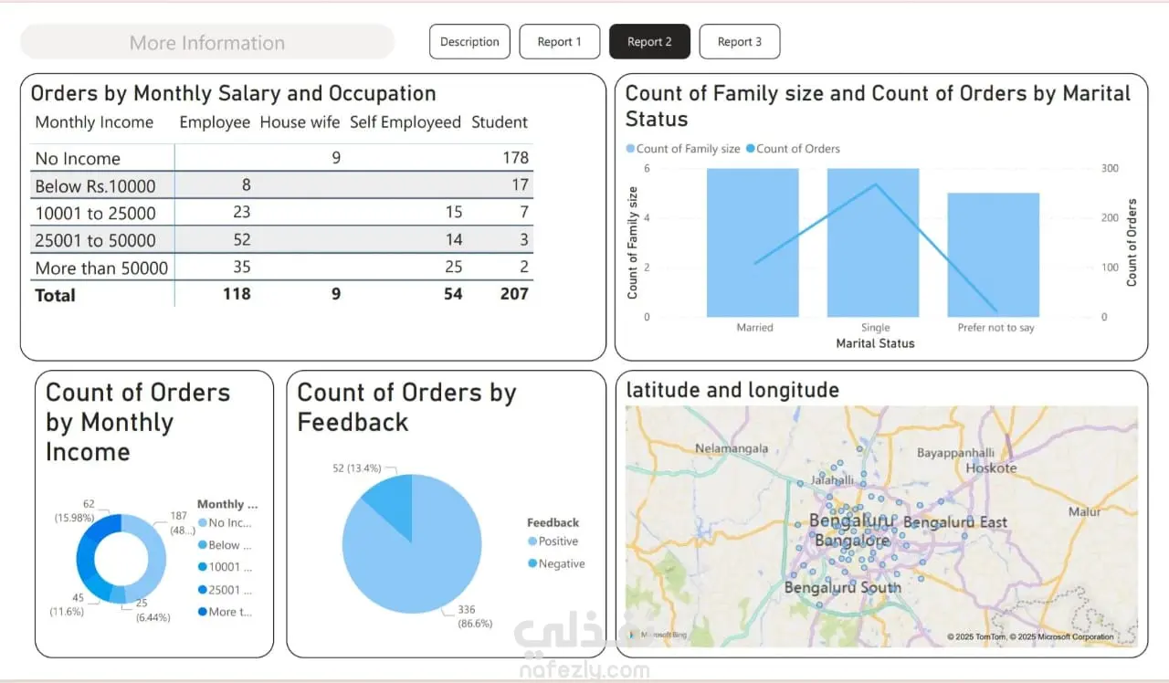 النتيجة: توفير رؤى سريعة وقابلة للتنفيذ للإدارة لتحسين جودة الخدمة والتنبؤ بتفضيلات العملاء بناءً على البيانات. هذا يمثل قدرتي على تحويل البيانات المعقدة إلى قرارات عمل بسيطة ومصورة.