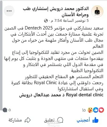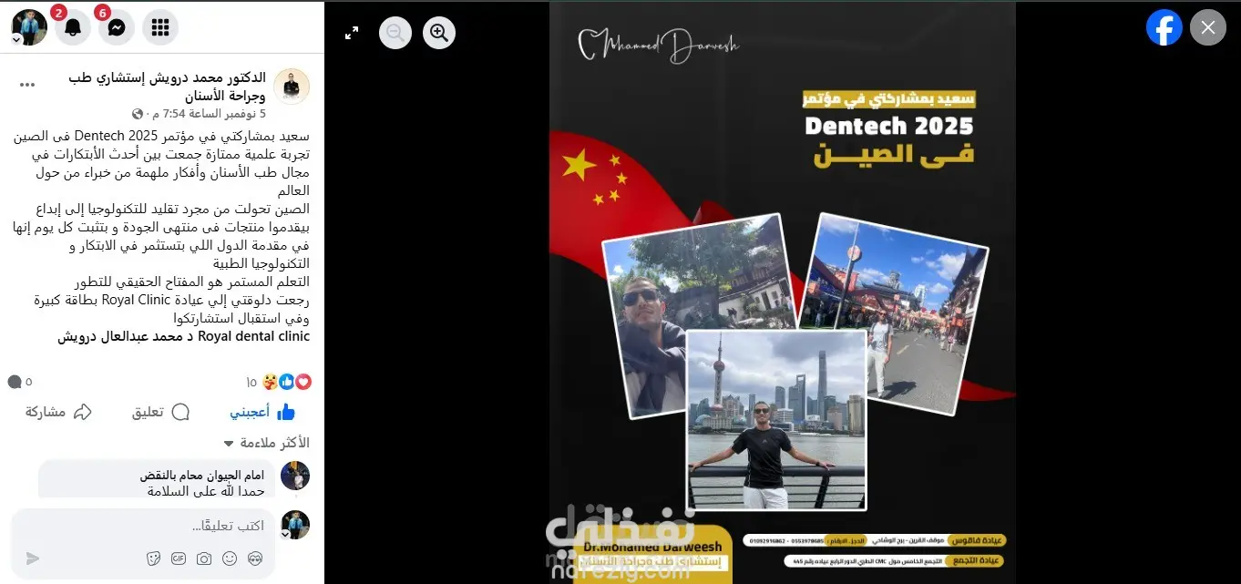 بوست لدكتور اسنان كان مطلوب بوست على الانستجرام و الفيسبوك لزيارته للصين و تم التنفيز بنجاح