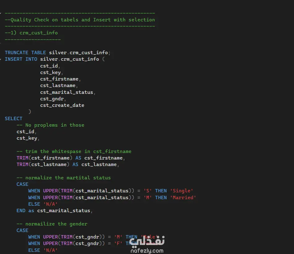 Gold: إنشاء النماذج البُعدية النهائية (Facts & Dimensions) الجاهزة للتحليلات.