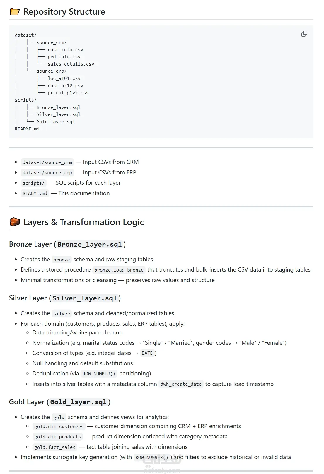 يهدف هذا المشروع إلى بناء مستودع بيانات متعدد الطبقات (Bronze → Silver → Gold) باستخدام ملفات CSV المستخرجة من أنظمة الـCRM والـERP.