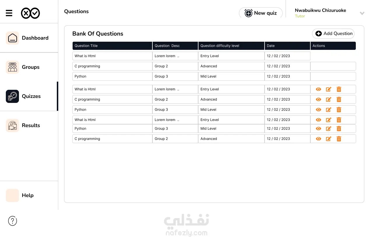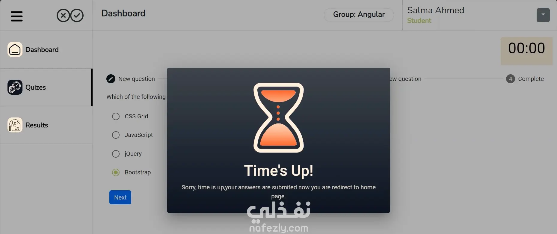 Helping Instructor and Student in Quiz Proccess and make it more easier. Instructor role can add/edit/delete students, groups and questions. Student role can quiz and see results. Authentication module token can define the role. Technologies Used Angular 16, Angular Material Ngx Spinner, Ngx Toaster SCSS, Bootstrap, Font-awesome Features Timer in Quiz Components and closed the component if tim's up. Code for one quiz only and one trial.