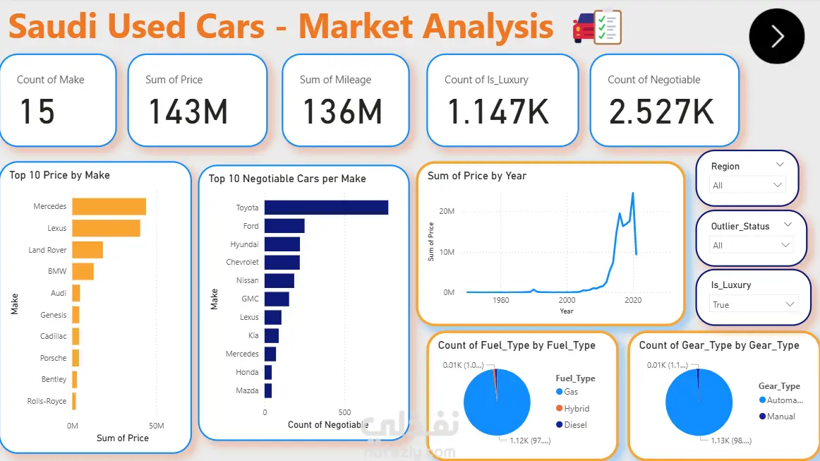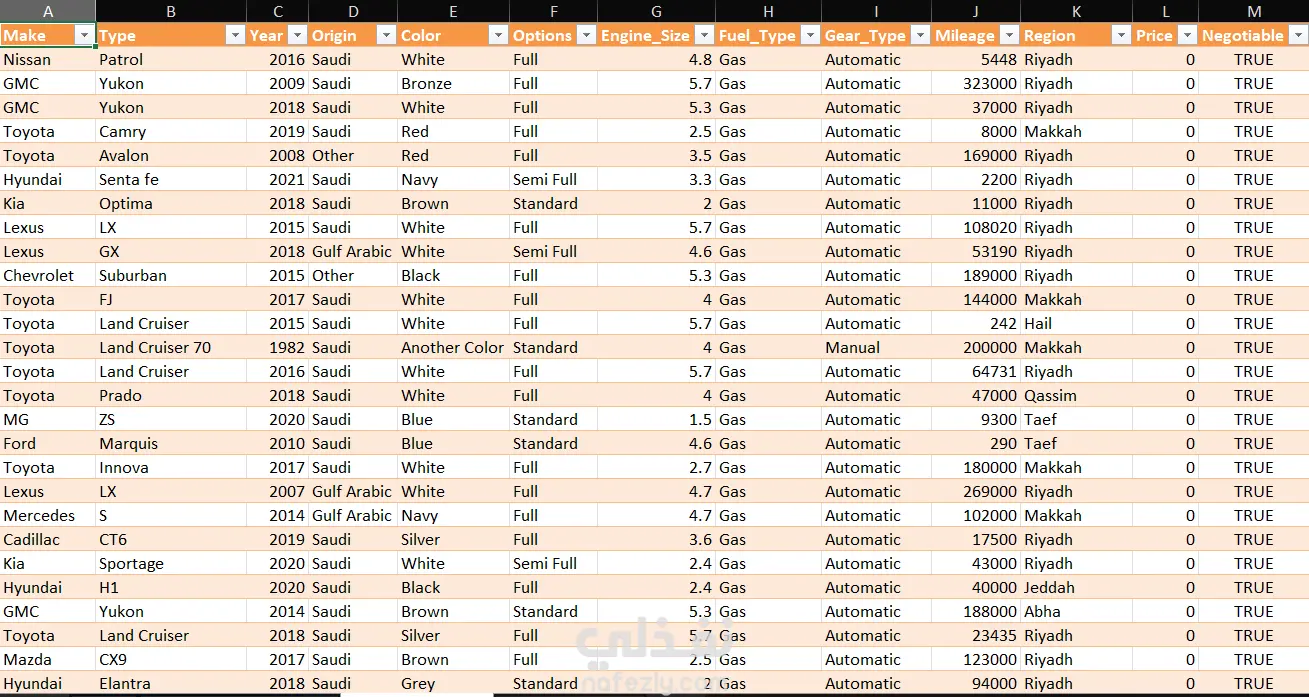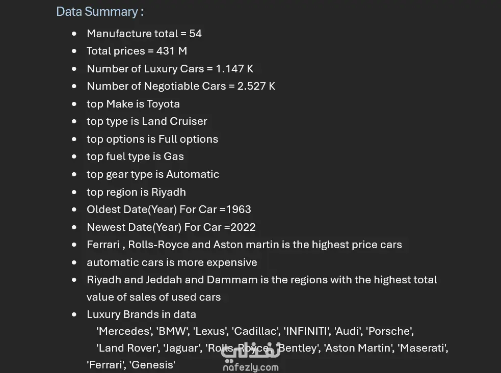 تحليل بيانات سوق السيارات المستعملة في المملكة العربية السعودية