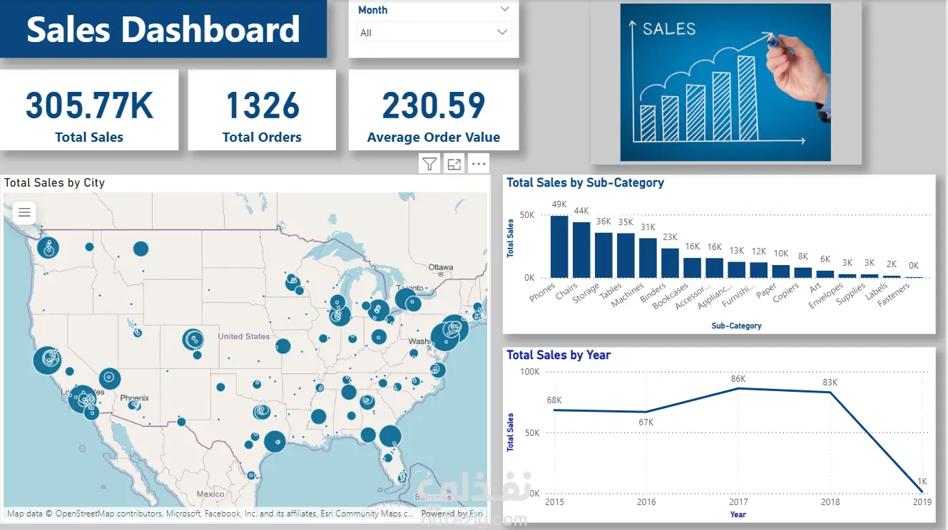 كتابة مقاييس DAX: إنشاء المقاييس والحسابات المعقدة اللازمة لاستخراج المقاييس الرئيسية (KPIs) مثل: إجمالي المبيعات، متوسط قيمة الطلب، ونسبة النمو.